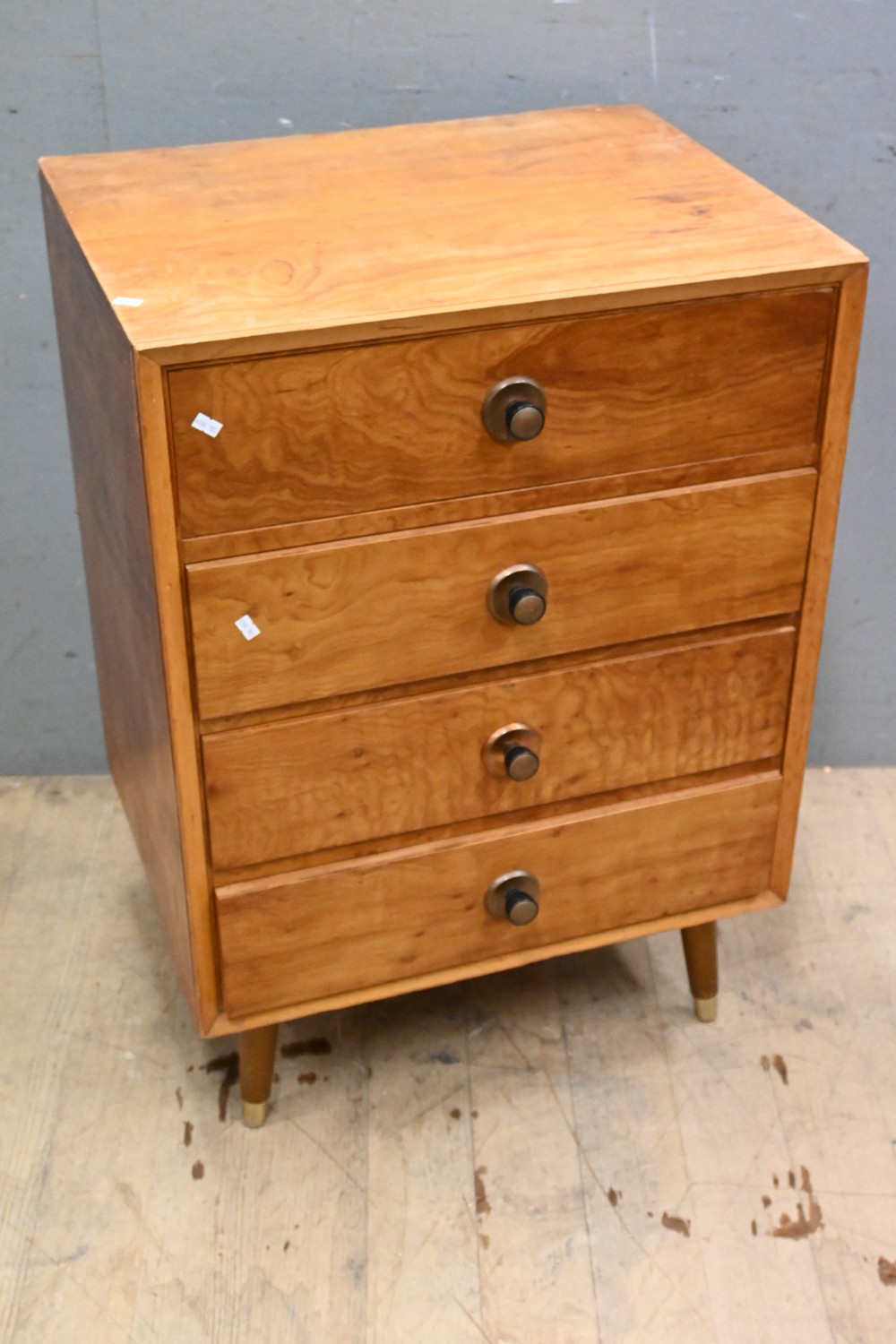 A MID CENTURY FOUR DRAWER CHEST (H88 X W62 X D48 CM) (PLEASE NOTE THIS HEAVY ITEM MUST BE REMOVED BY CARRIERS AT THE CUSTOMER'S EXPENSE. LEONARD JOEL STAFF CANNOT ASSIST CARRYING THIS ITEM) (X-LARGE ITEM)