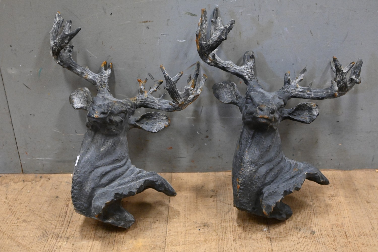A PAIR OF CAST IRON ELK BUSTS ( 48H X 35W CM) (LEONARD JOEL DELIVERY SIZE: LARGE)