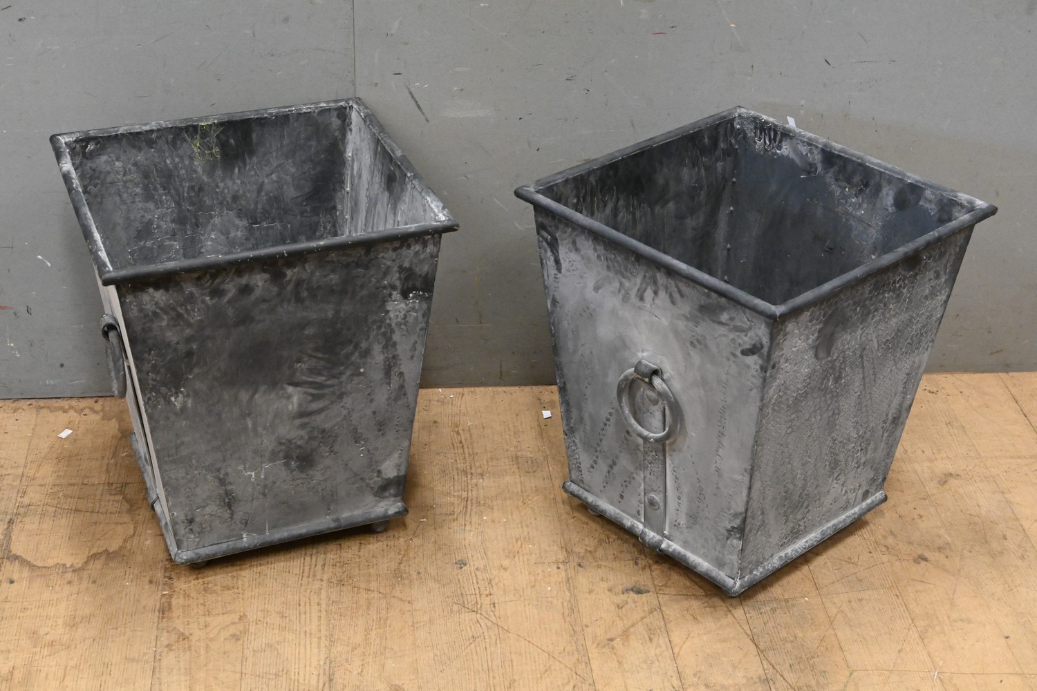 A PAIR OF METAL PLANTERS ( 49H X 43W X 43D CM) (LEONARD JOEL DELIVERY SIZE: LARGE)