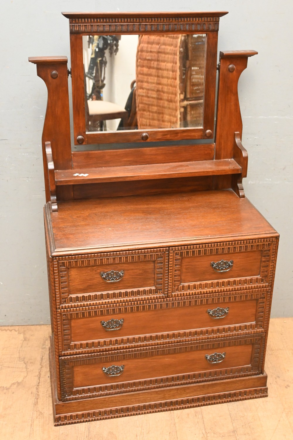 A MIRROR BACK FOUR DRAWER CHEST (143H X 82W X 45D CM) (PLEASE NOTE THIS HEAVY ITEM MUST BE REMOVED BY CARRIERS AT THE CUSTOMER'S EXPENSE. LEONARD JOEL STAFF CANNOT ASSIST CARRYING THIS ITEM) (X-LARGE ITEM)