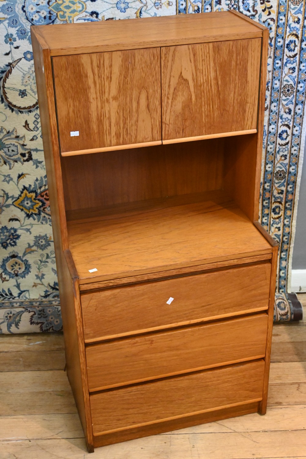 A RETRO MID CENTURY AUSTRALIAN TEAK DISPLAY UNIT (A/F) (H120 X W58 X D39 CM) (LEONARD JOEL DELIVERY SIZE: LARGE)