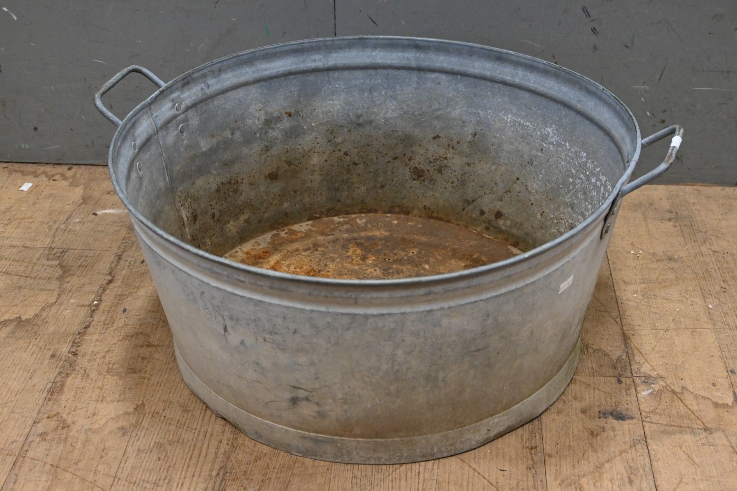 A LARGE 1900S FRENCH CIRCULAR GALVONISED 2 HANDLED BATH (H28 X D62 CM) (LEONARD JOEL DELIVERY SIZE: MEDIUM)