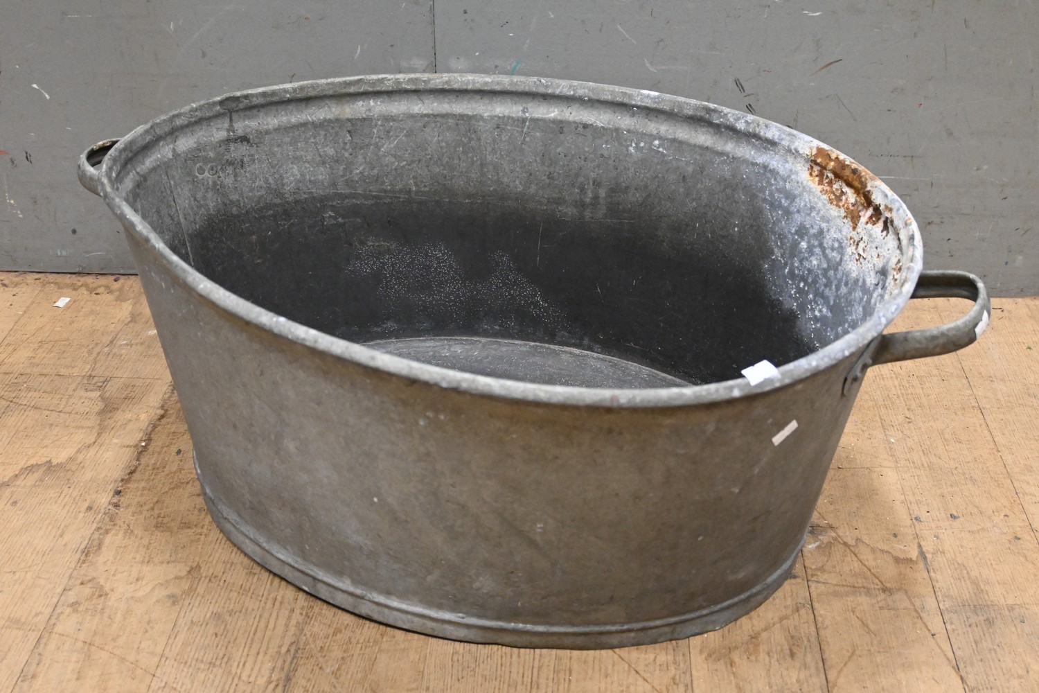 A LARGE 1900S FRENCH OVAL GALVONISED 2 HANDLED BATH (H32 X W80 X D57 CM) (LEONARD JOEL DELIVERY SIZE: MEDIUM)