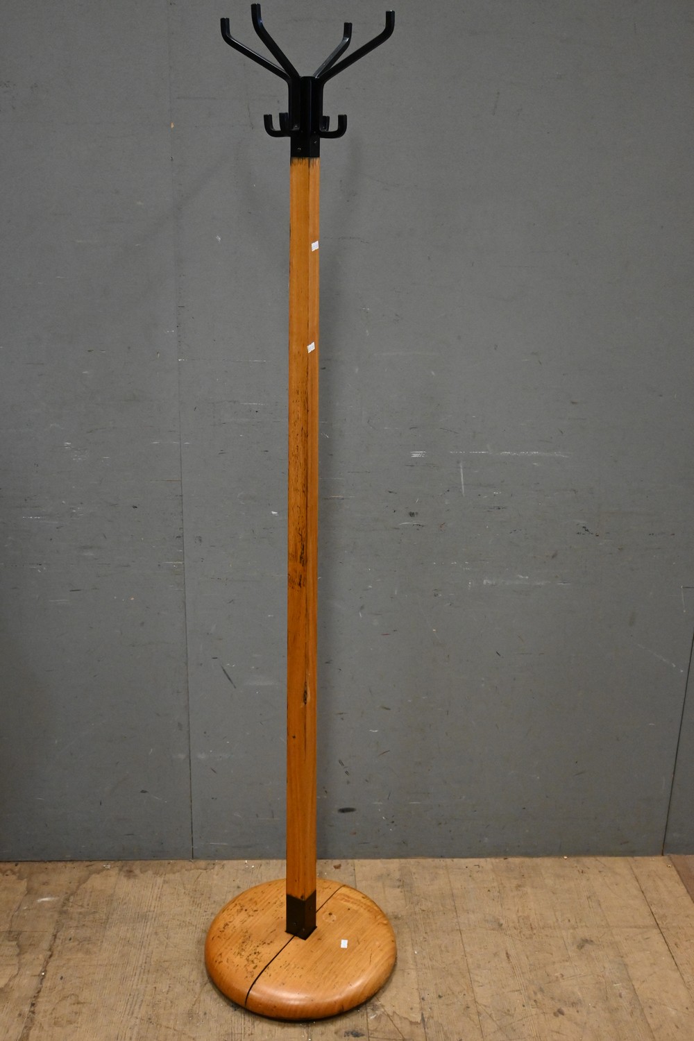 A 1950S HEAVY BASED AUSTRALIAN OAK AND STEEL COAT STAND (H175 X D40 CM) (LEONARD JOEL DELIVERY SIZE: LARGE)