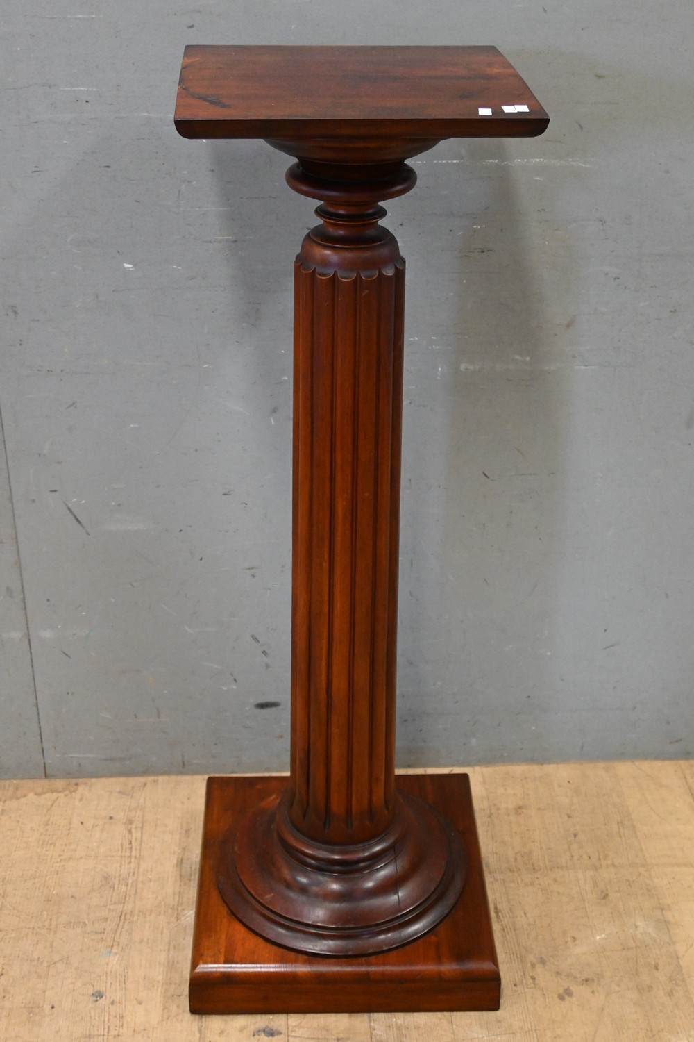 A TALL BLACKWOOD PEDESTAL WITH REEDED TRUNK CIRCA 1910 (A/F) (116 H X 36 W X 36 D) (LARGE)