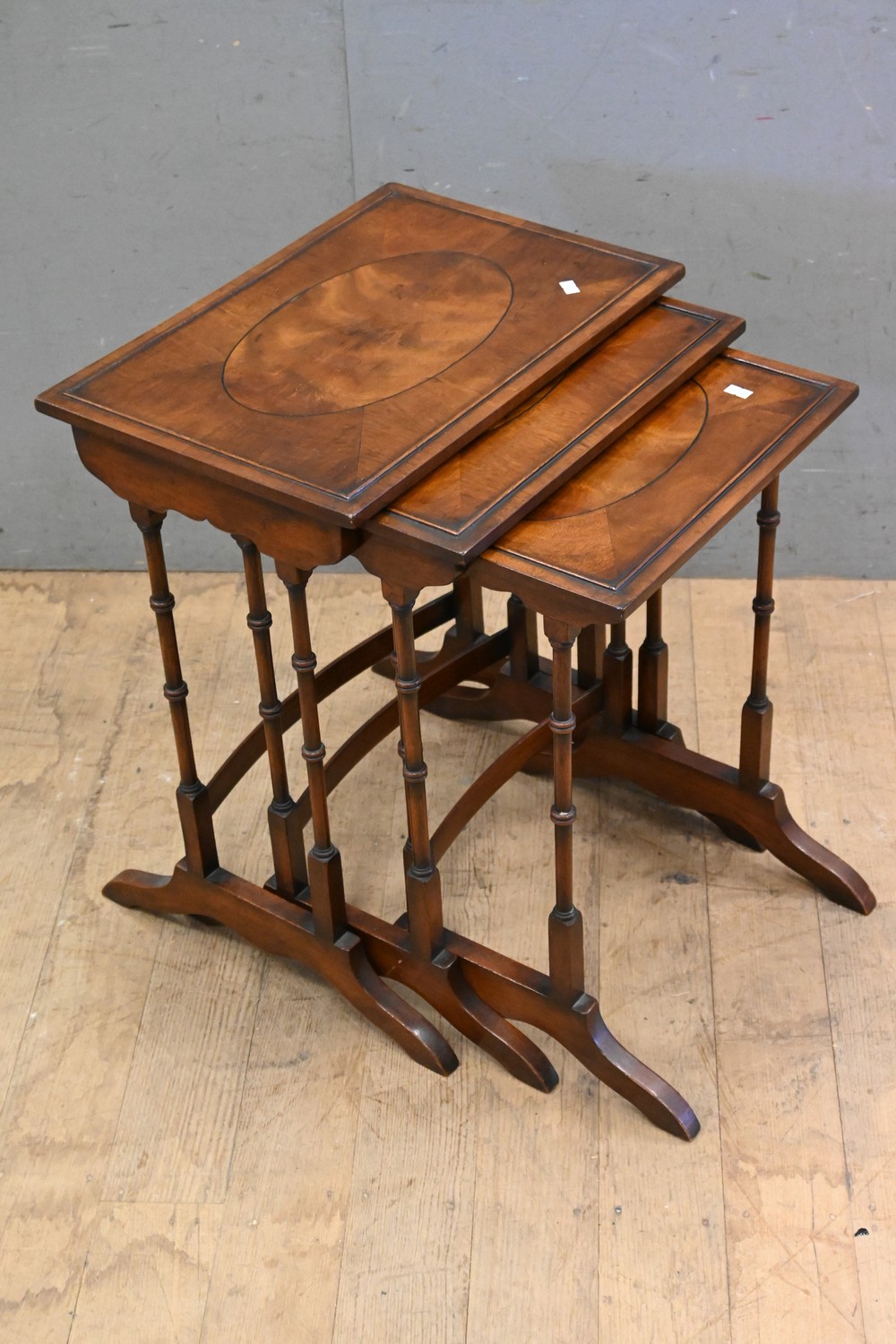 A NEST OF THREE GEORGIAN STYLE TABLES, (THE LARGEST 60H X 49W X 33D CM) (LEONARD JOEL DELIVERY SIZE: MEDIUM)