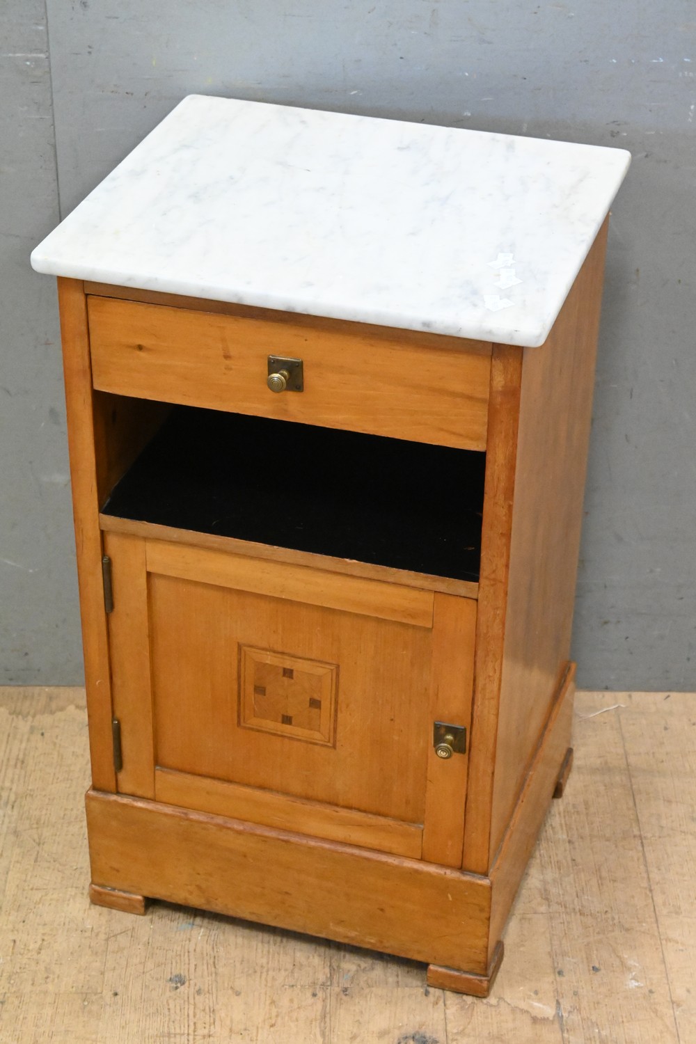 A MARBLE TOP BEDSIDE CABINET (71H X 42W X 36D CM) (LEONARD JOEL DELIVERY SIZE: LARGE)