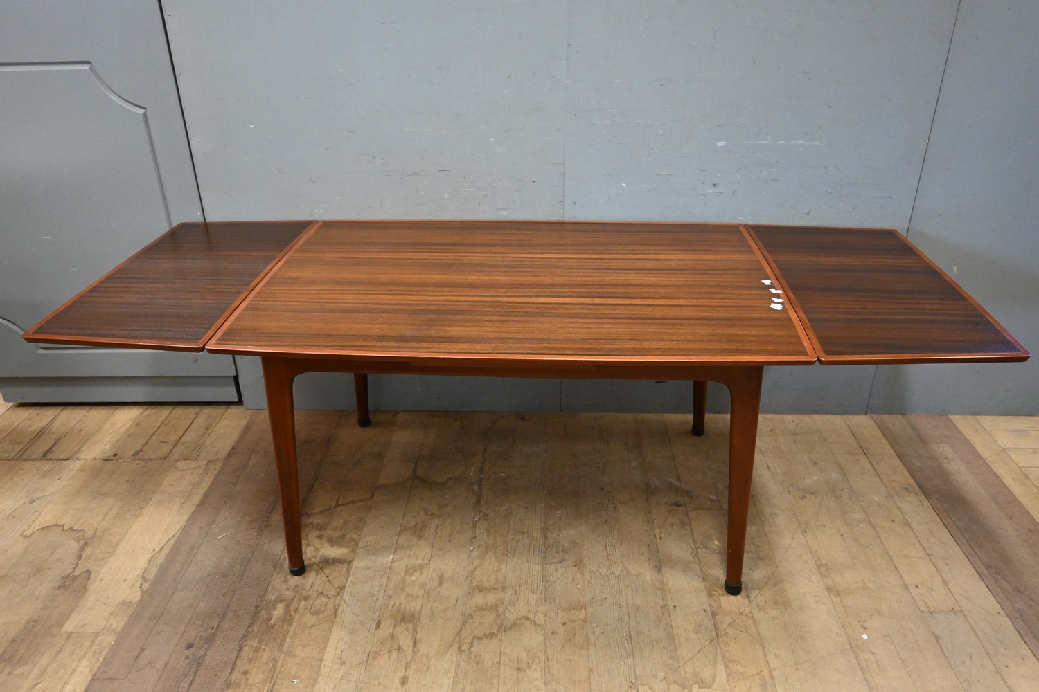A WALNUT 1970S EXTENSION DINING TABLE (75H X 228W X 93D CM) (PLEASE NOTE THIS HEAVY ITEM MUST BE REMOVED BY CARRIERS AT THE CUSTOMER'S EXPENSE. LEONARD JOEL STAFF CANNOT ASSIST CARRYING THIS ITEM) (X-LARGE ITEM)