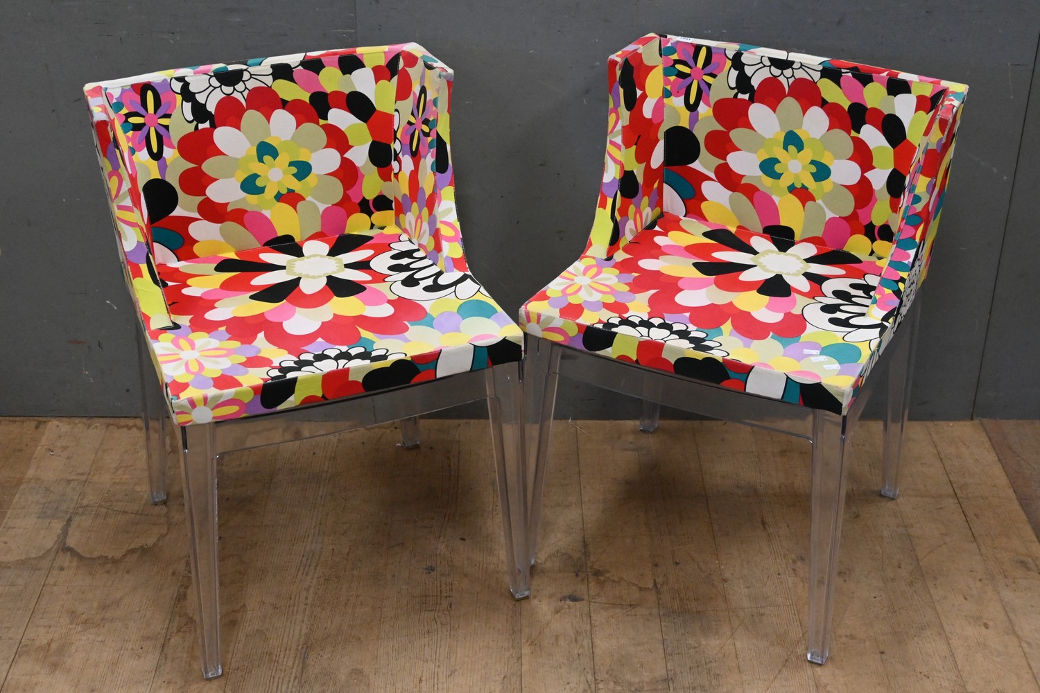 A PAIR OF KARTELL STYLE UPHOLSTERED CHAIRS (76H X 50W X 47D CM) (LEONARD JOEL DELIVERY SIZE: LARGE)