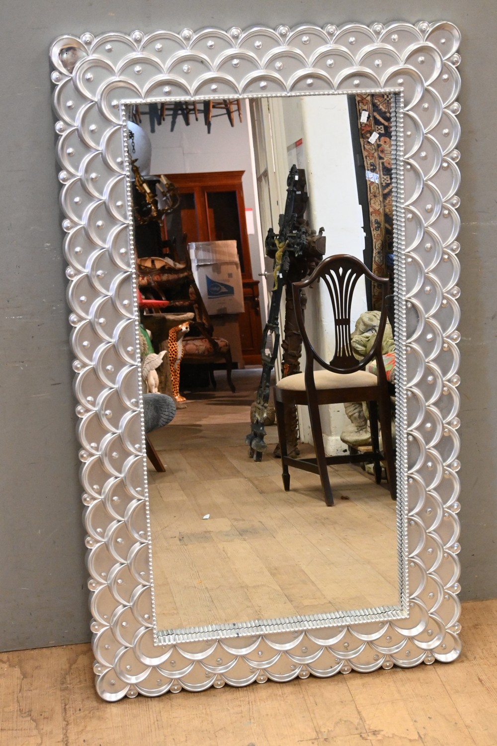 A CONTEMPORARY SILVER EFFECT FRAMED MIRROR (144H X 85W CM) (LEONARD JOEL DELIVERY SIZE: LARGE)