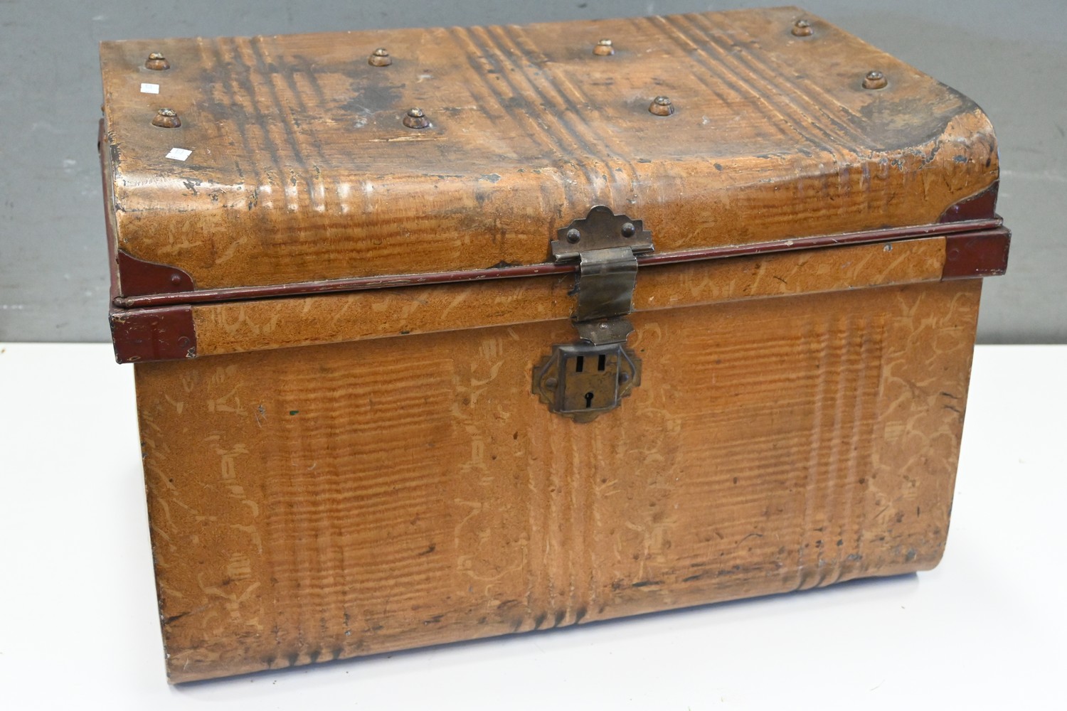 A RUSTIC METAL SHIPPING TRUNK (A/F) (40H X 59W X 44D) (LEONARD JOEL DELIVERY SIZE: MEDIUM)