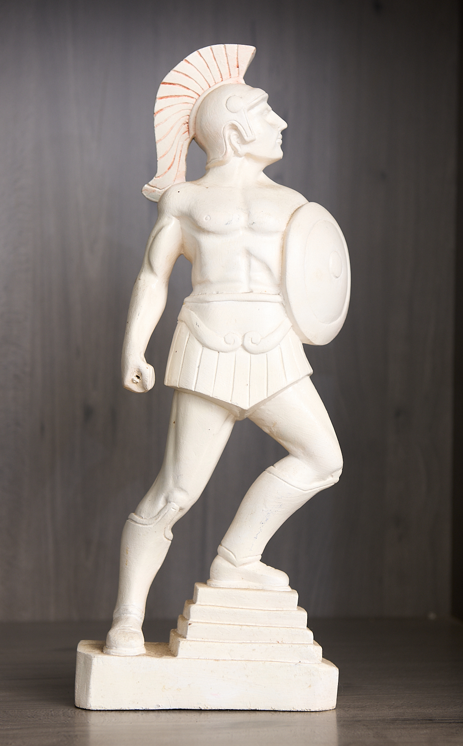 A WOODEN STATUE OF A SPARTAN H. 47.5CM, LEONARD JOEL LOCAL DELIVERY SIZE: MEDIUM