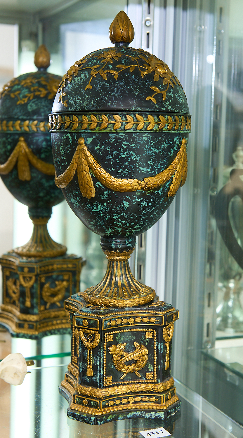 A RESIN LIDDEN URN WITH GILT DECORATIONS H. 42CM, LEONARD JOEL LOCAL DELIVERY SIZE: MEDIUM