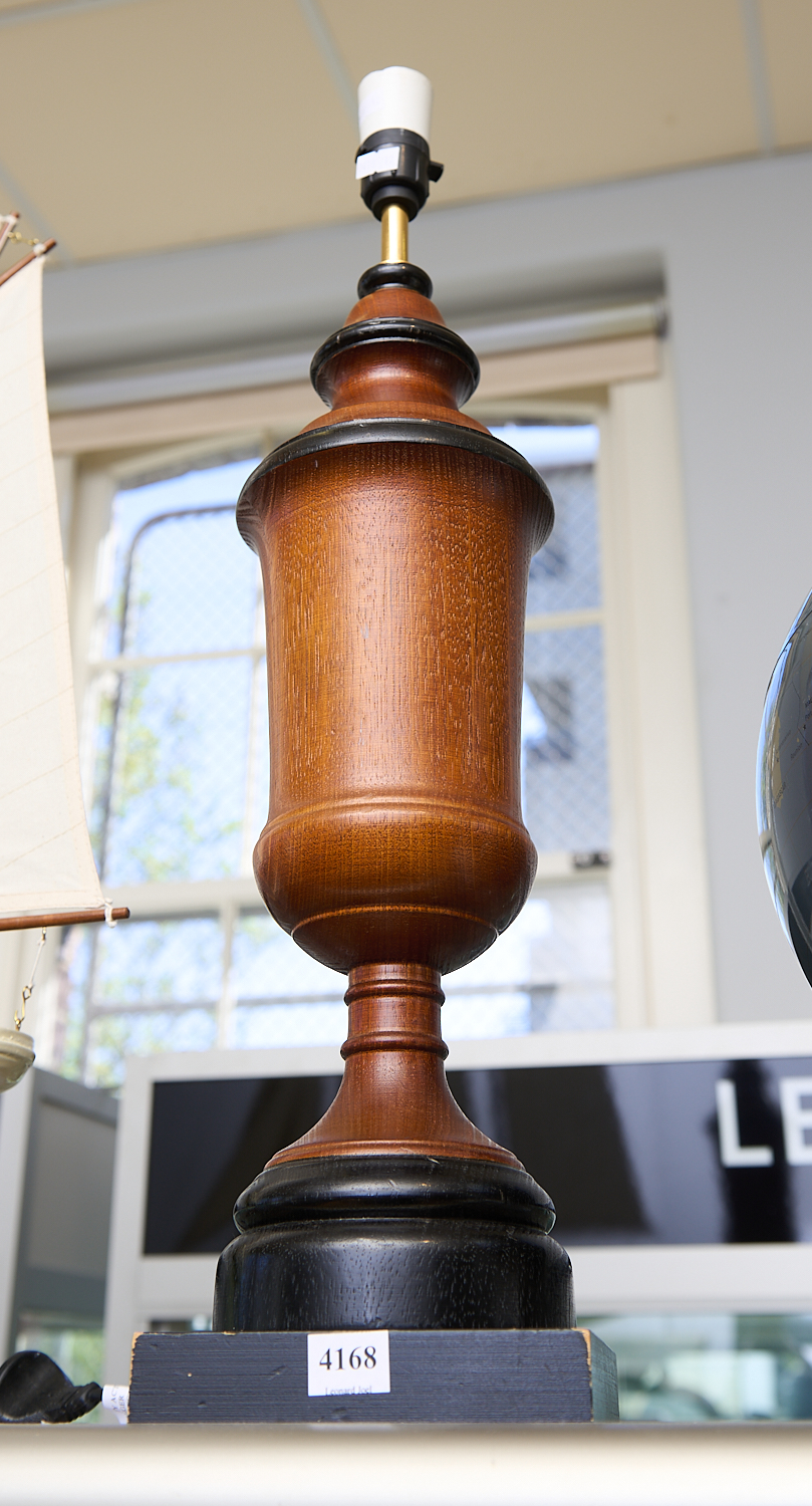 A WOODEN TABLE LAMP BASE H. 60CM, LEONARD JOEL LOCAL DELIVERY SIZE: MEDIUM