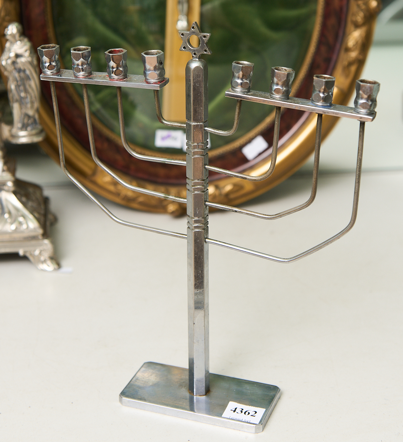 A METAL MENORAH H. 26.5CM, LEONARD JOEL LOCAL DELIVERY SIZE: SMALL