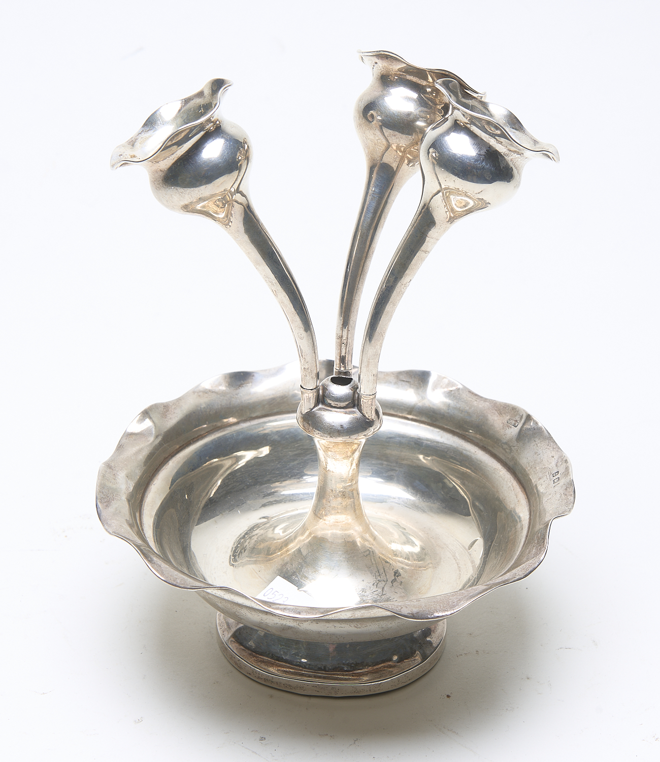 A VICTORIAN STERLING SILVER EPERGNE (A/F MISSING CENTRAL VASE) H.20.5CM, LEONARD JOEL LOCAL DELIVERY SIZE: SMALL