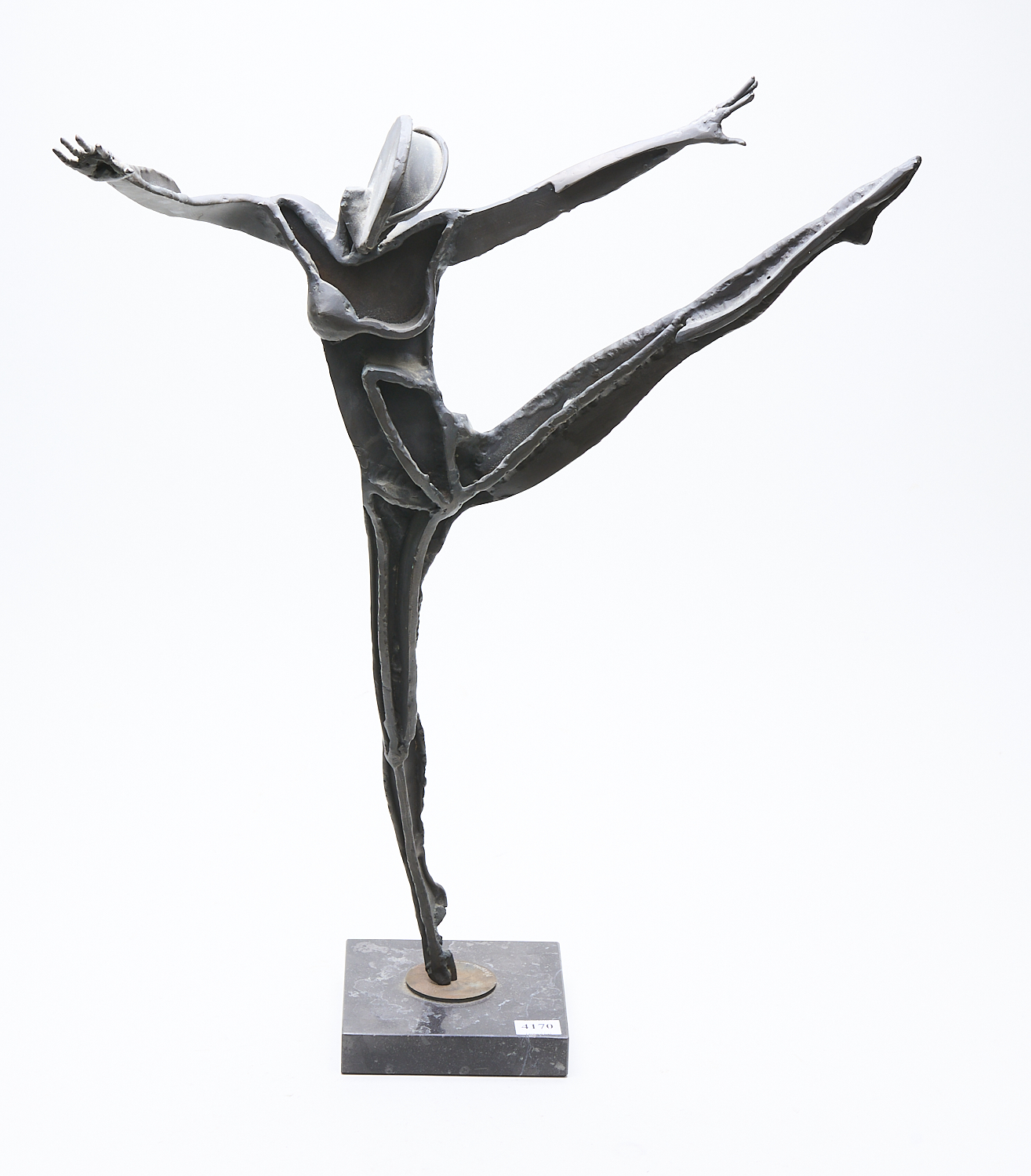 A BRONZE DANCING FIGURE SIGNED 'MARSHAL' ON STONE BASE H. 55CM, LEONARD JOEL LOCAL DELIVERY SIZE: MEDIUM
