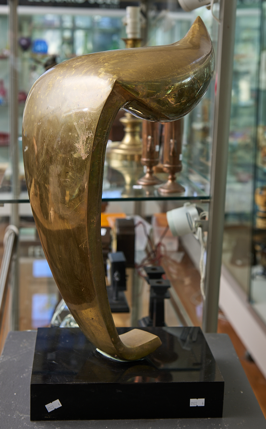 AN ABSTRACT MODERN BRASS SCULPTURE SIGNED D. DELO, C.1970S H.60CM, LEONARD JOEL LOCAL DELIVERY SIZE: MEDIUM