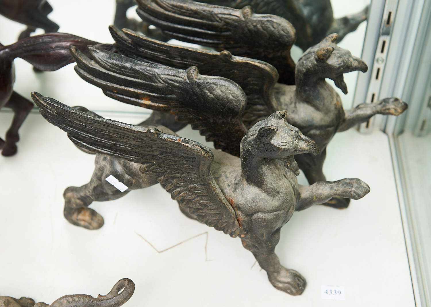 A PAIR OF CAST IRON GRIFFINS H.22CM X W.36CM, LEONARD JOEL LOCAL DELIVERY SIZE: MEDIUM