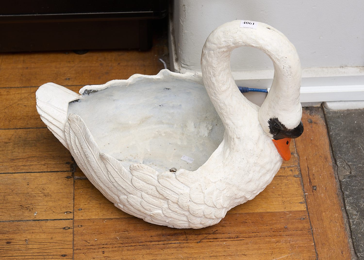 A CAST IRON SWAN PLANTER H.39CM X W.44CM, LEONARD JOEL LOCAL DELIVERY SIZE: MEDIUM