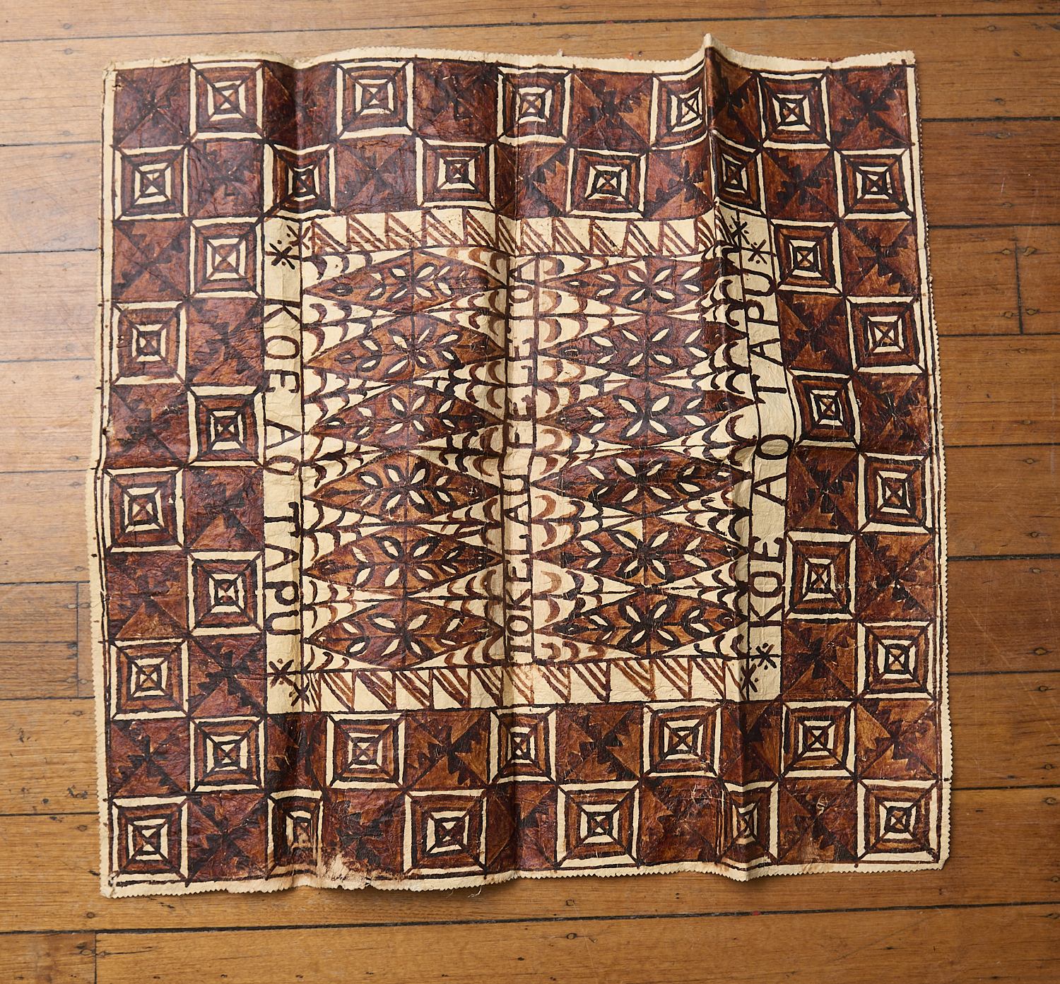 AN IMPORTANT TONGAN NGATU BARK CLOTH FROM FELETOA BY LIFEIMILOTOLAGI MAFI (80 X 86CM), LEONARD JOEL LOCAL DELIVERY SIZE: SMALL