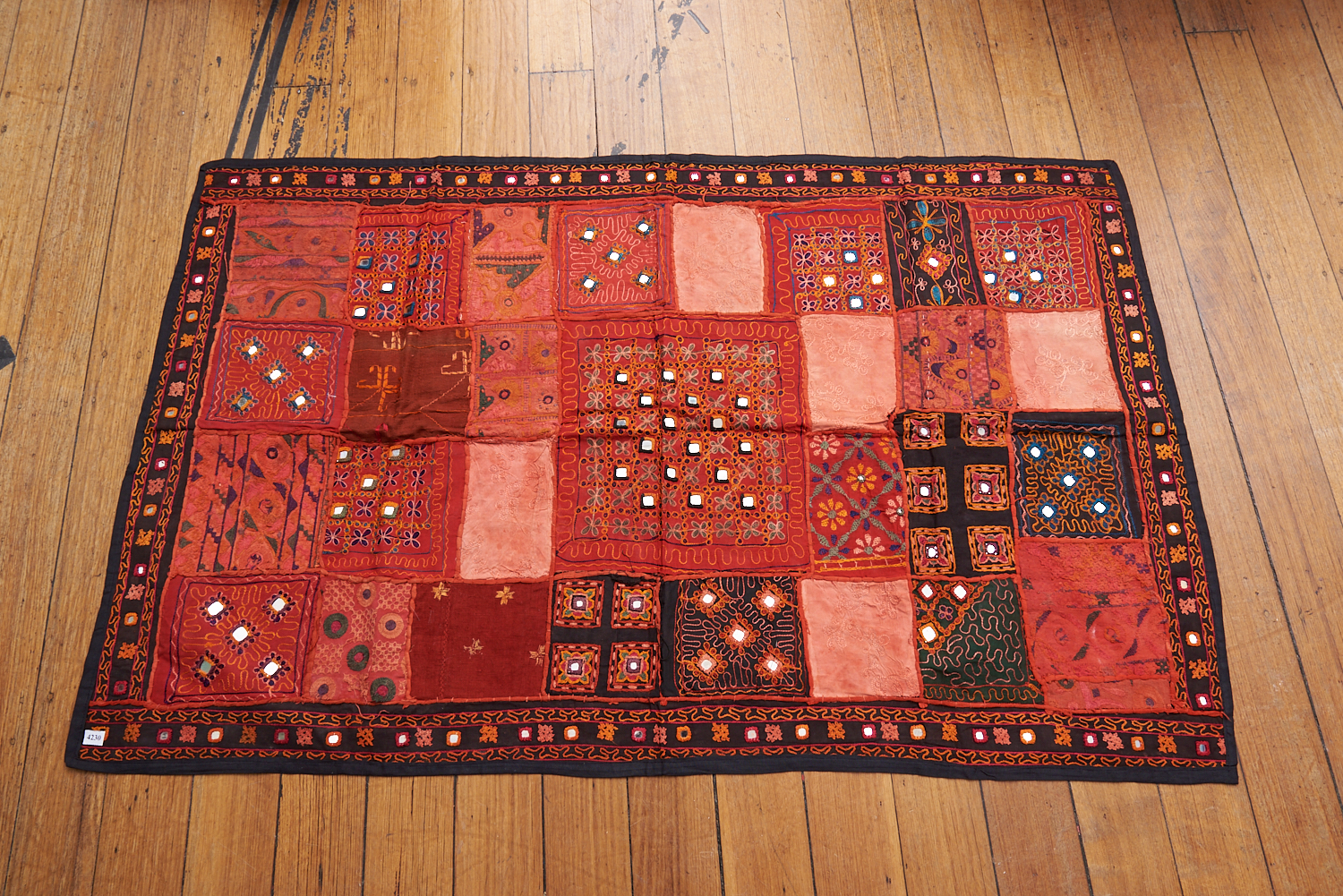 A VINTAGE GUJARAT MIRROR EMBROIDERY TEXTILE (92 X 146CM), LEONARD JOEL LOCAL DELIVERY SIZE: SMALL