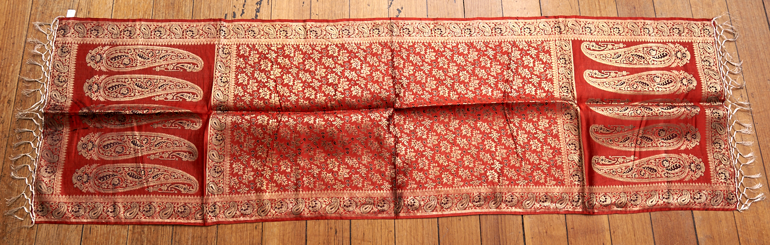 AN INDIAN METALLIC THREAD MACHINE-EMBROIDERED TABLE RUNNER (55 X 195CM), LEONARD JOEL LOCAL DELIVERY SIZE: SMALL
