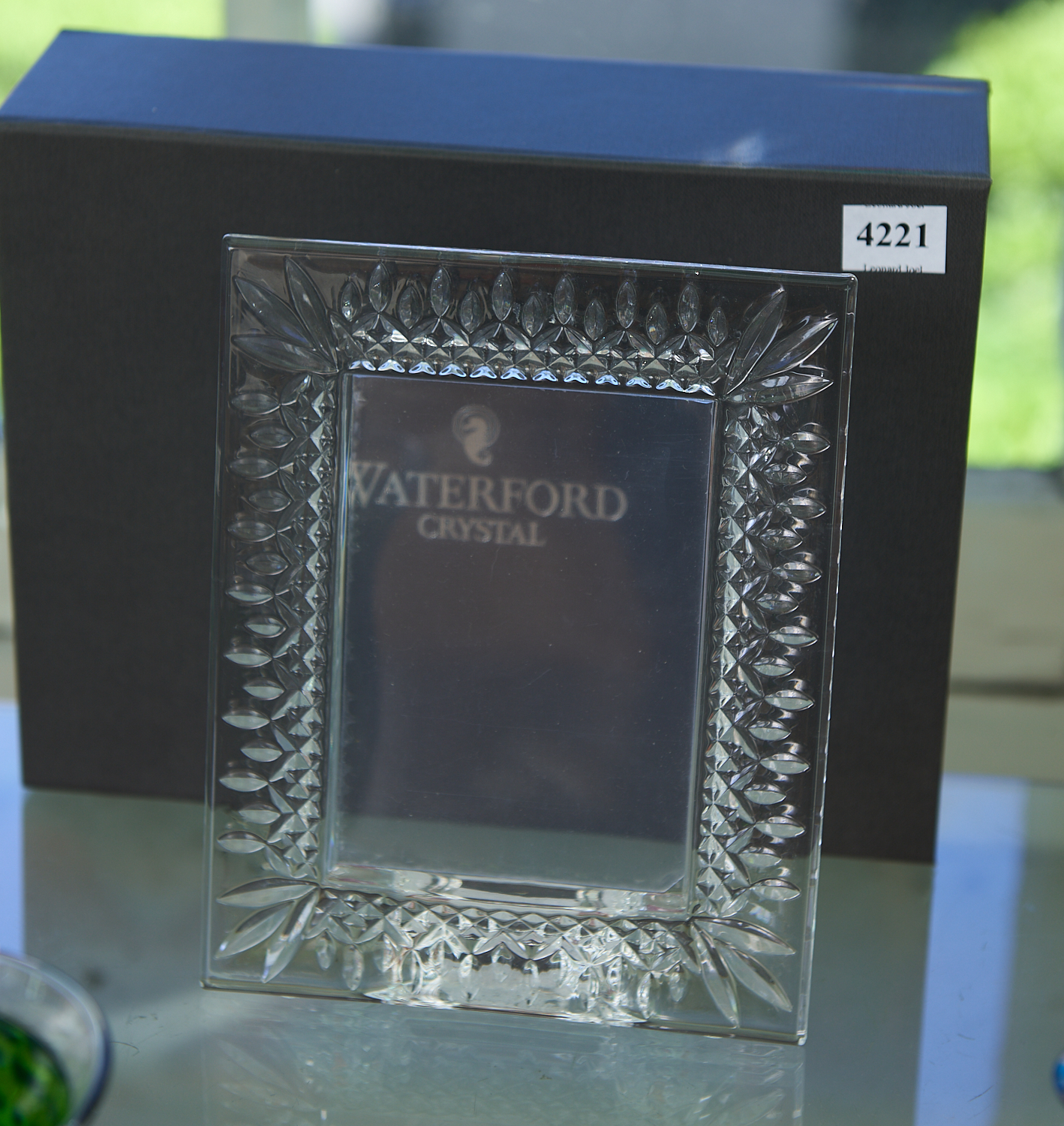 A WATERFORD LISMORE PATTERN PHOTOFRAME WITH BOX H.19CM X W.15CM, LEONARD JOEL LOCAL DELIVERY SIZE: SMALL