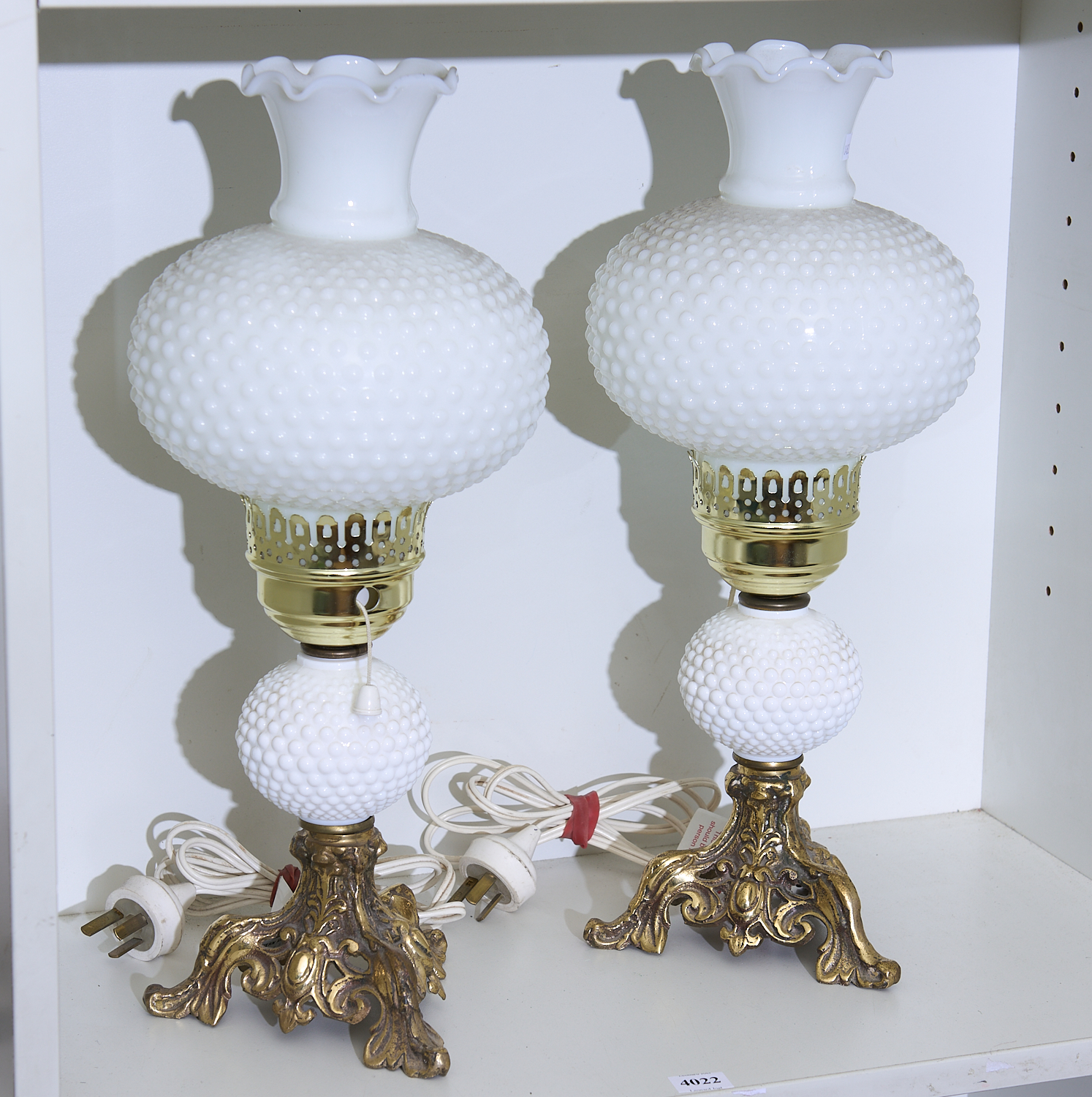 A PAIR OF MILK GLASS ELECTRIC LAMPS H.44CM, LEONARD JOEL LOCAL DELIVERY SIZE: MEDIUM