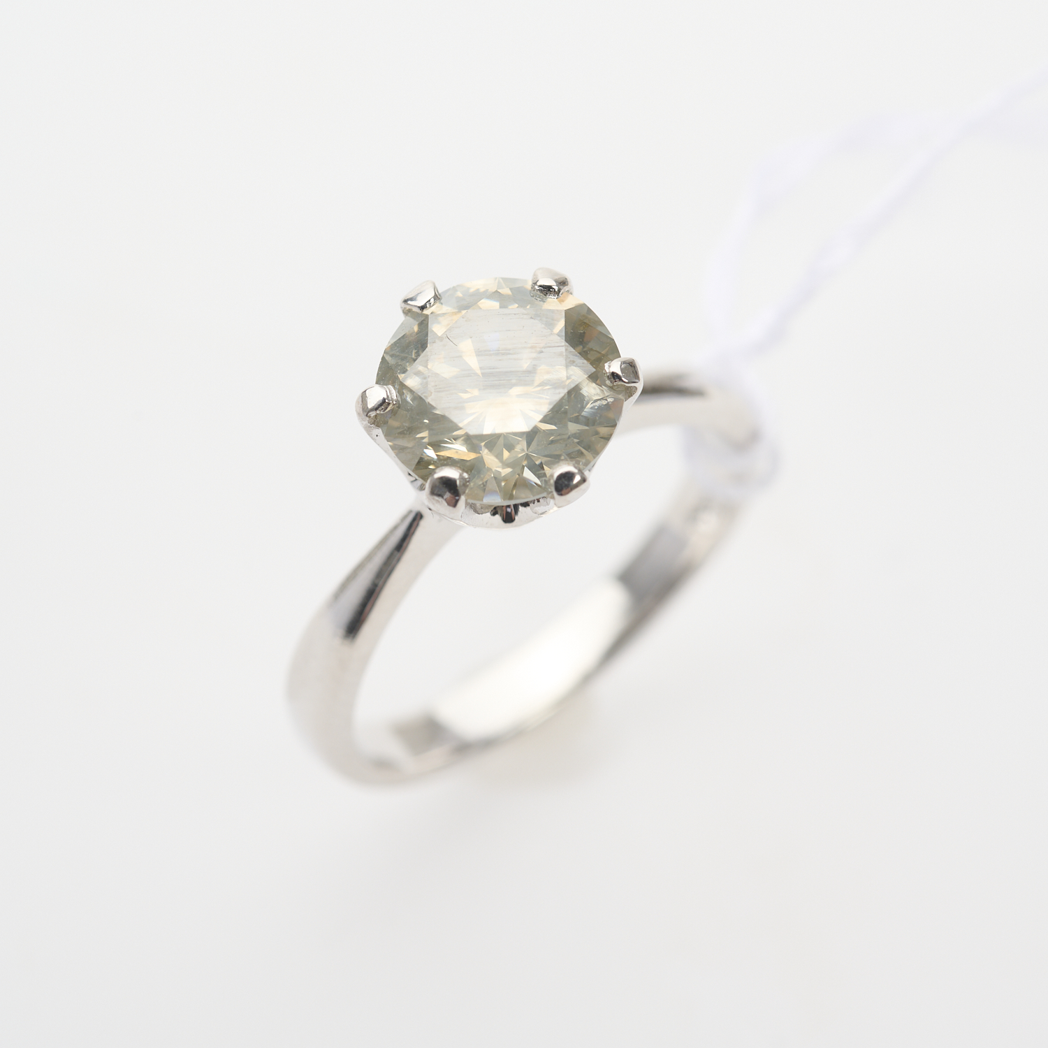 A DIAMOND SET RING IN 18CT WHITE GOLD, CENTRING A CLAW-SET ROUND BRILLIANT-CUT DIAMOND WEIGHING 1.22 CARATS, FLANKED BY FURTHER BRIL...