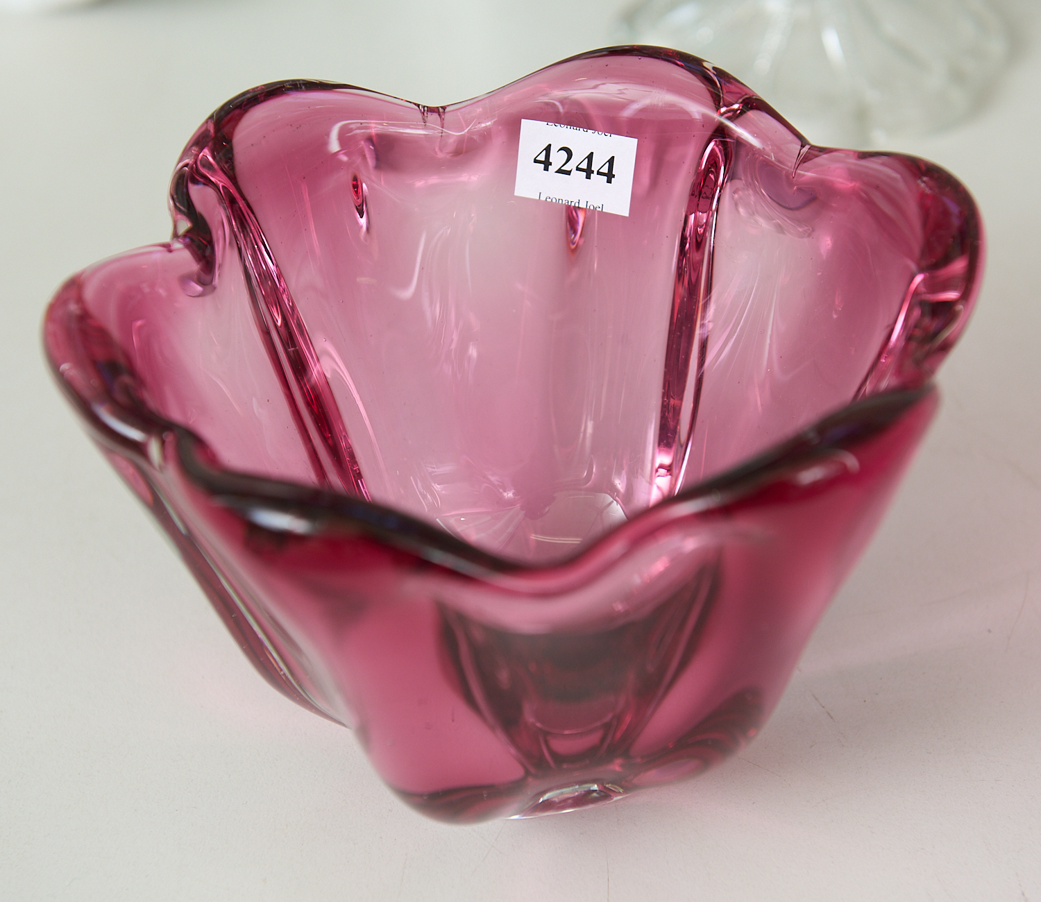 A VINTAGE ART GLASS BOWL WITH FLUTED EDGE, H.12CM DIA.18CM, LEONARD JOEL LOCAL DELIVERY SIZE: SMALL
