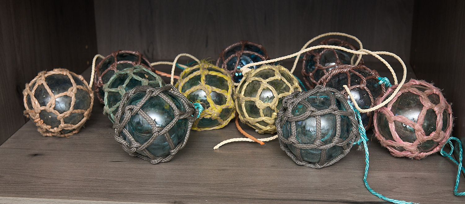 A COLLECTION OF VINTAGE ROPE CLAD GLASS FISHING FLOATS, LEONARD JOEL LOCAL DELIVERY SIZE: SMALL