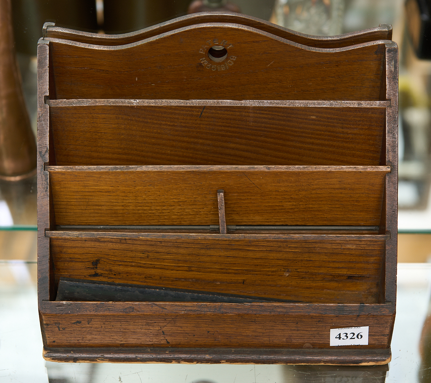 AN ENGLISH OAK FIVE SECTION DESK ORGANISER (A/F) H.19CM, LEONARD JOEL LOCAL DELIVERY SIZE: SMALL