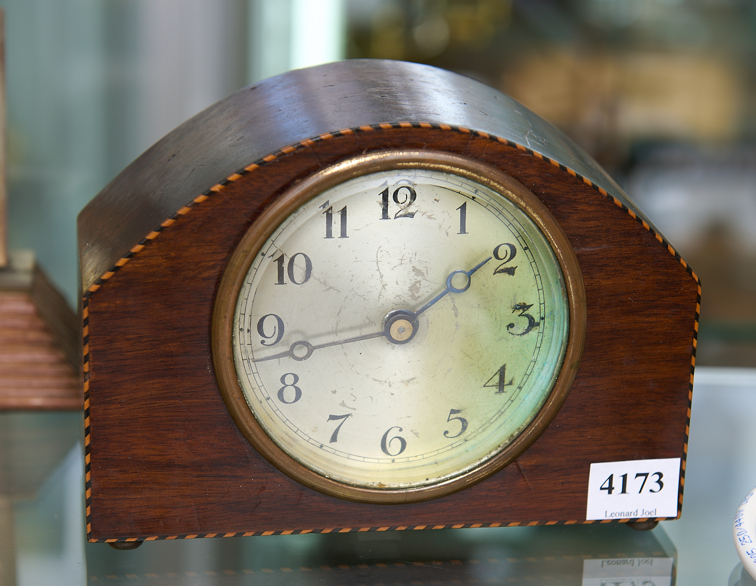A SHERATON MAHOGANY CASED CLOCK, W.16CM, LEONARD JOEL LOCAL DELIVERY SIZE: SMALL