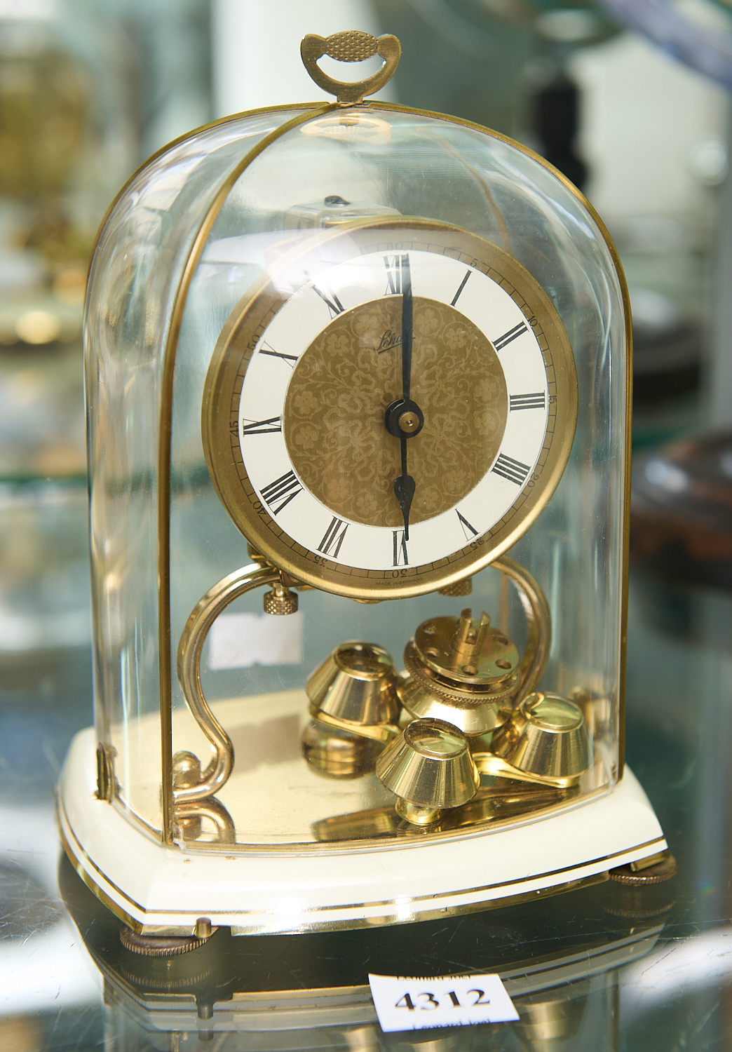 A GERMAN SCHATZ DOME TOPPED 8 DAY CLOCK WITH ENAMELLED BRASS BASE H.18.5CM, LEONARD JOEL LOCAL DELIVERY SIZE: SMALL