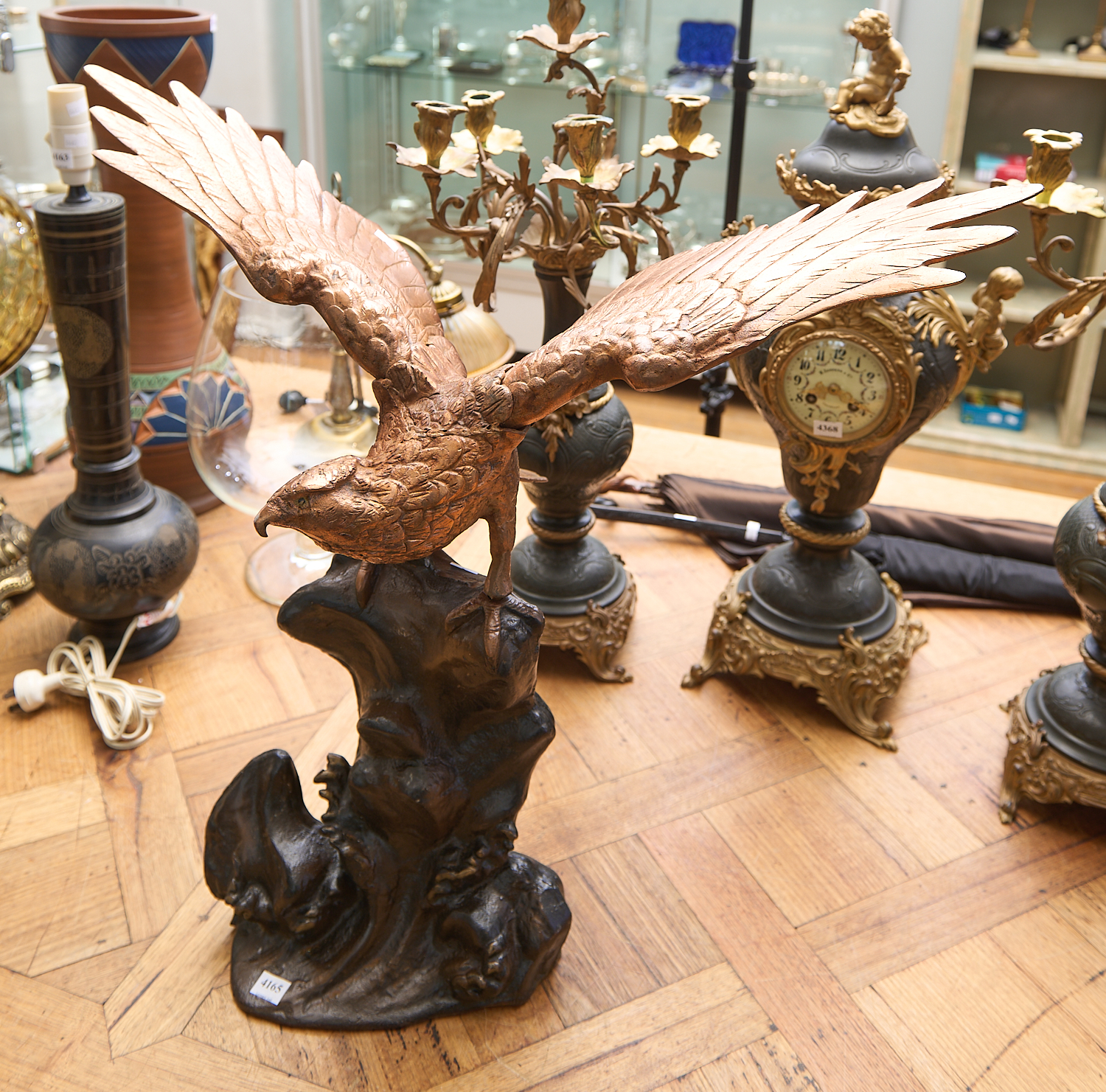 A VINTAGE JAPANESE GILT CAST IRON EAGLE ATOP ROCKY OUTCROP H.65.5CM, LEONARD JOEL LOCAL DELIVERY SIZE: MEDIUM
