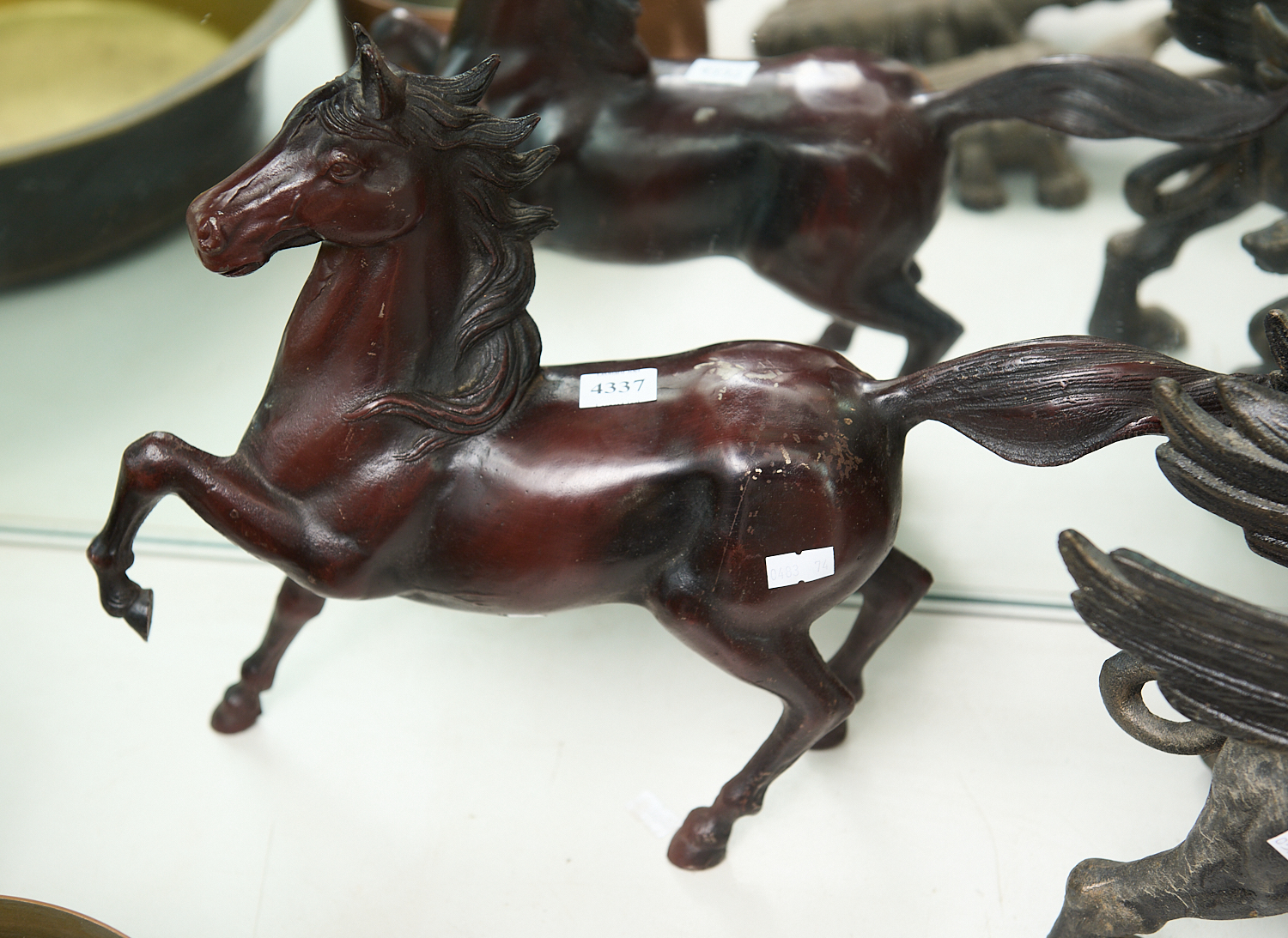 A VINTAGE BRONZED CAST IRON PRANCING HORSE FIGURE, W.44CM, LEONARD JOEL LOCAL DELIVERY SIZE: SMALL