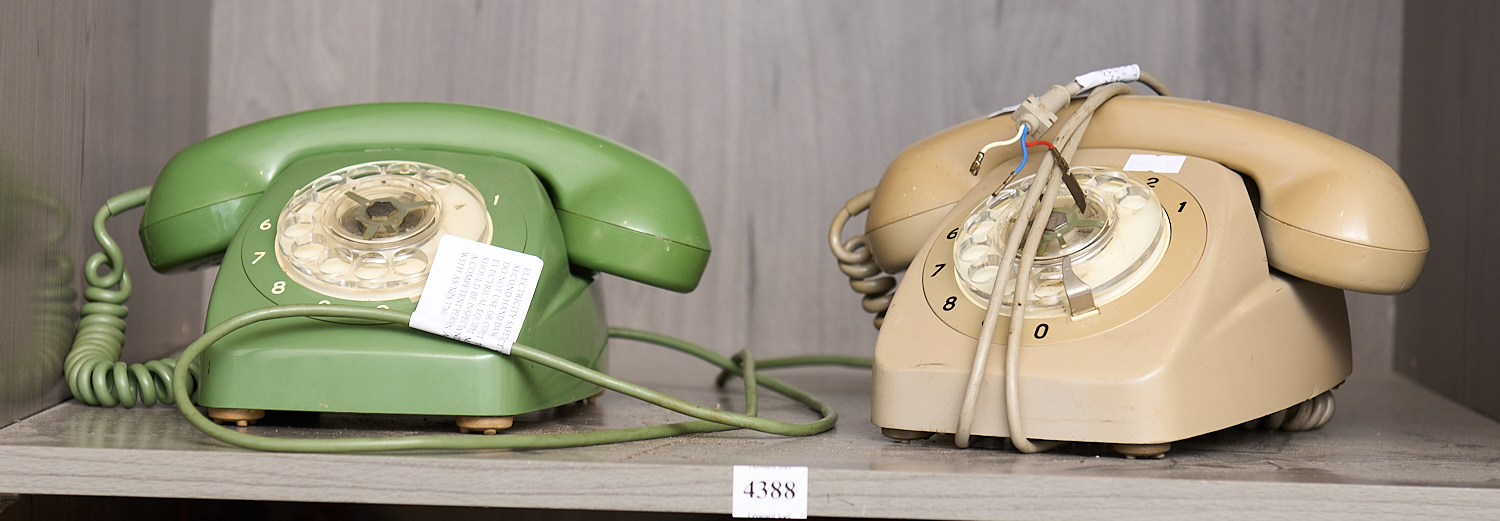 TWO VINTAGE DIAL TELEPHONES INCLUDING GREEN, LEONARD JOEL LOCAL DELIVERY SIZE: MEDIUM