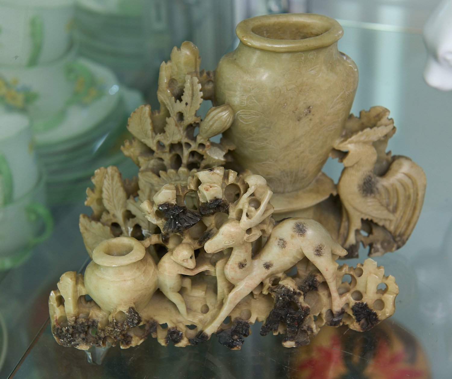 TWO CHINESE SOAPSTONE CARVINGS H.15CM (TALLEST), LEONARD JOEL LOCAL DELIVERY SIZE: SMALL