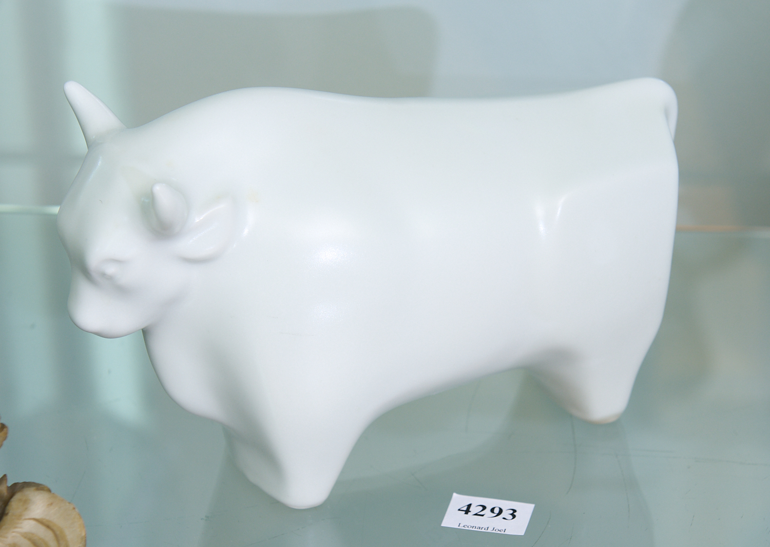 AN ASIAN PORCELAIN BULL FIGURE W.21CM, LEONARD JOEL LOCAL DELIVERY SIZE: SMALL