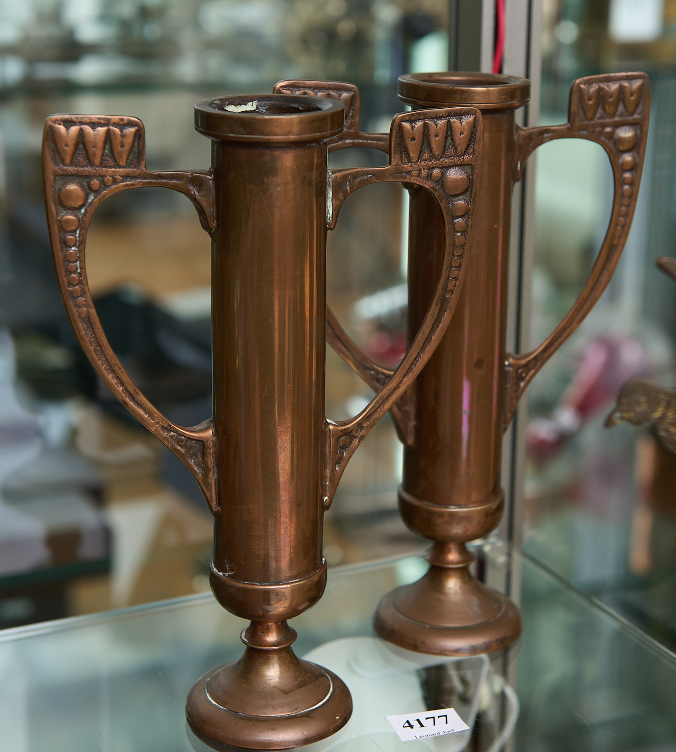 TWO ART DECO COPPER VASES H.21.5CM, LEONARD JOEL LOCAL DELIVERY SIZE: SMALL