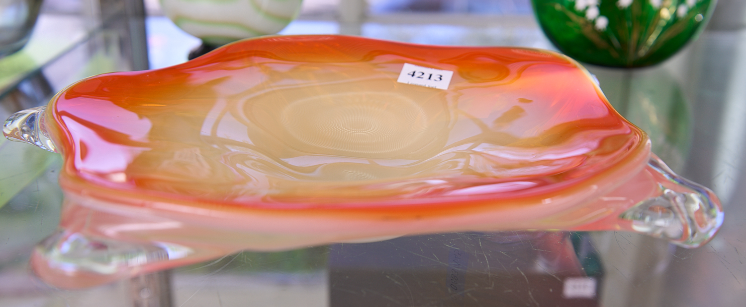 AN ORANGE CASED GLASS CENTRE BOWL W.29CM, LEONARD JOEL LOCAL DELIVERY SIZE: SMALL