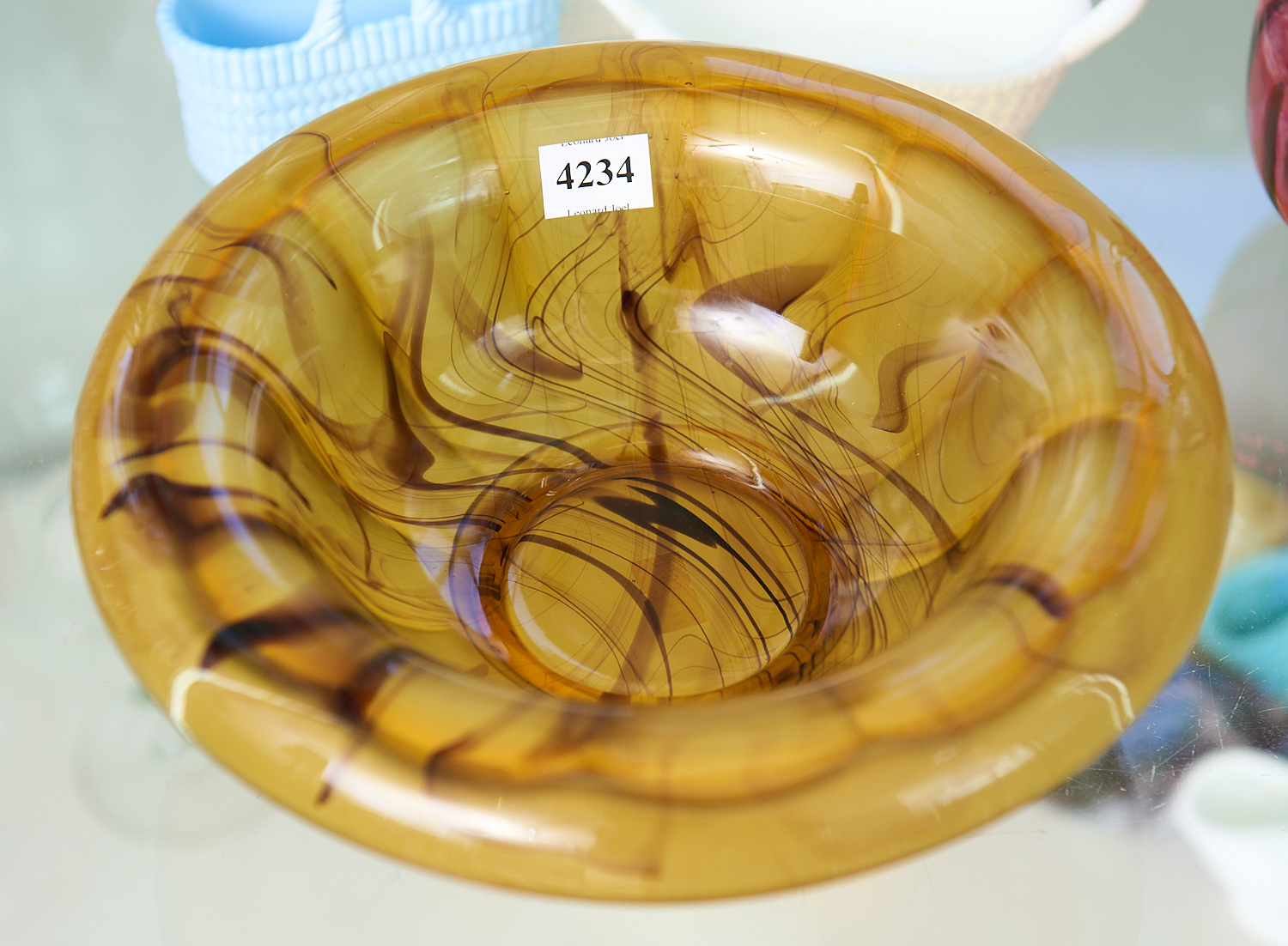 AN ENGLISH DAVIDSON CLOUD GLASS BOWL DIA.25CM, LEONARD JOEL LOCAL DELIVERY SIZE: SMALL
