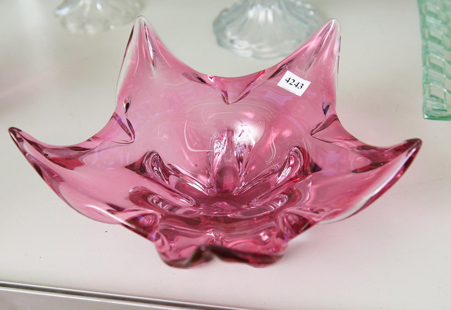 AN ART GLASS PINK STAR FORM BOWL DIA.30CM, LEONARD JOEL LOCAL DELIVERY SIZE: MEDIUM