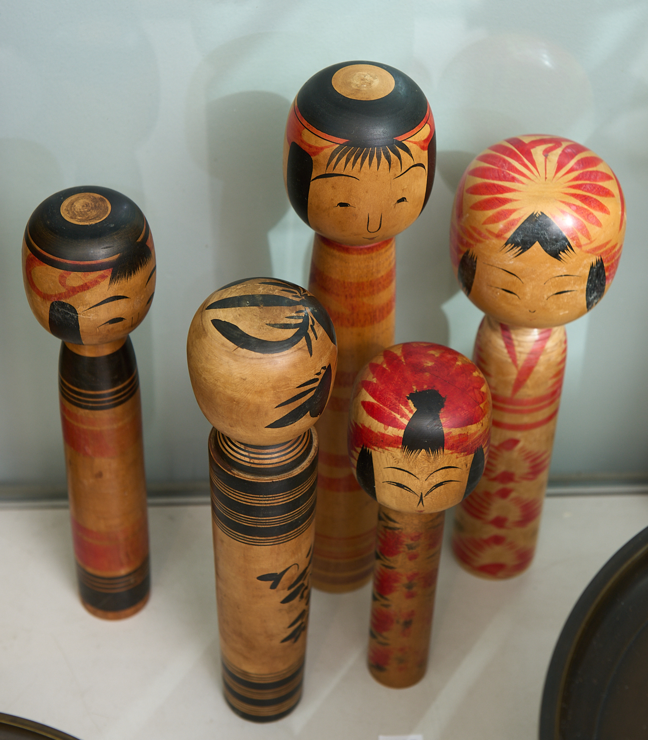 A COLLECTION OF FIVE VINTAGE HAND PAINTED KOKESHI DOLLS, LEONARD JOEL LOCAL DELIVERY SIZE: MEDIUM