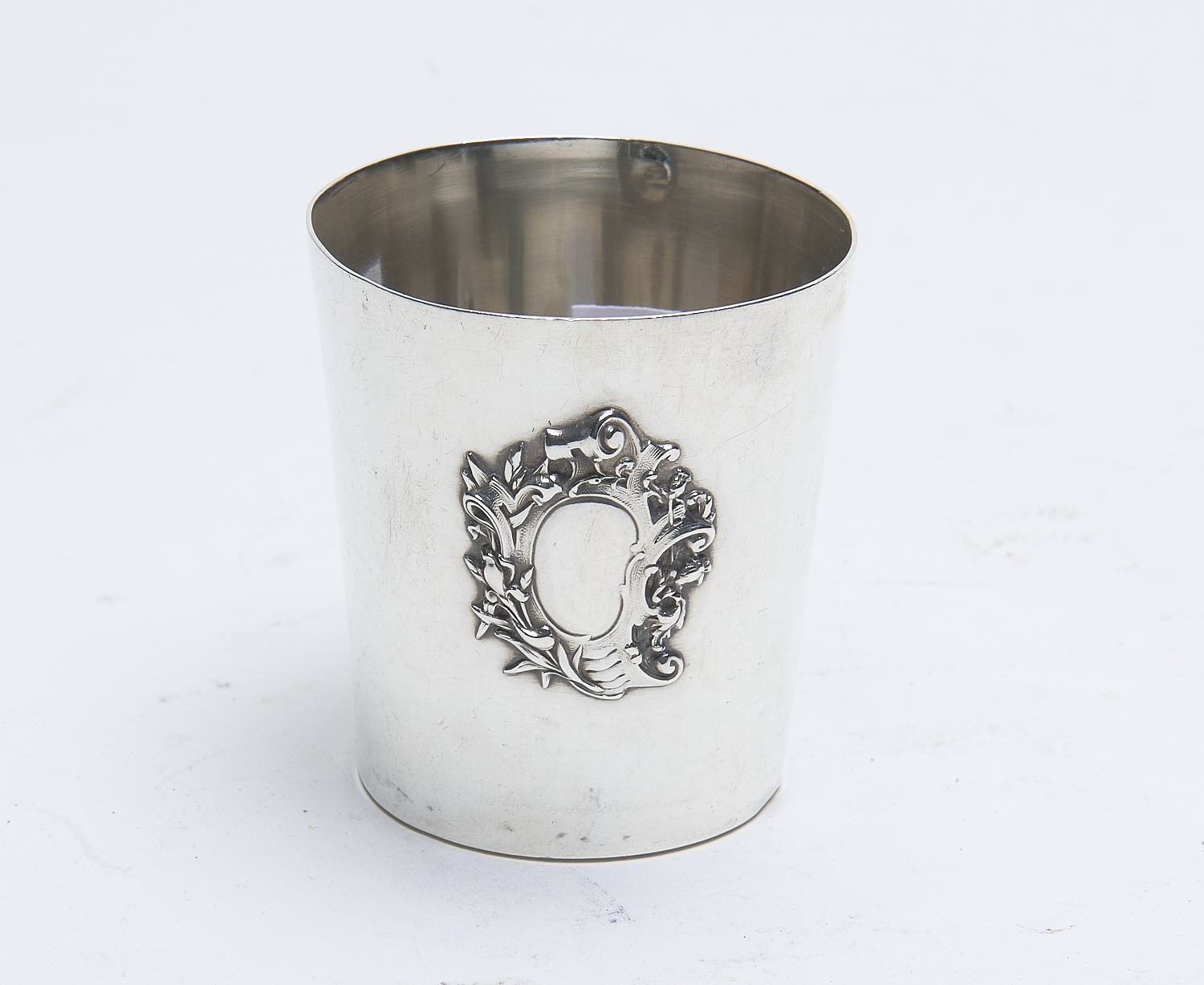 A 19TH CENTURY FRENCH SILVER CUP WITH APPLIED FLORAL CREST - 48 GRAMS H.6CM, LEONARD JOEL LOCAL DELIVERY SIZE: SMALL