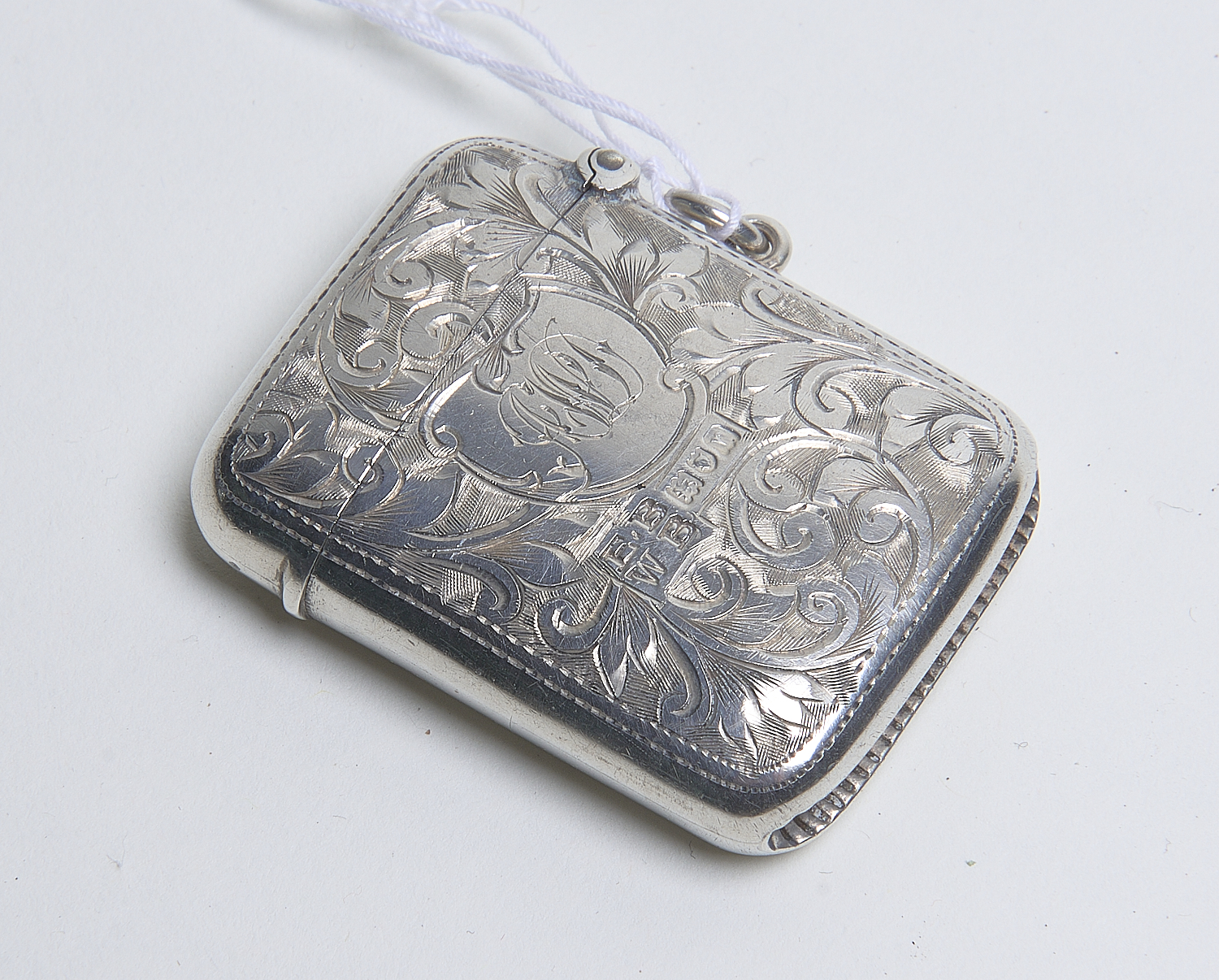 A FINELY ENGRAVED STERLING SILVER VESTA H.4.5CM, LEONARD JOEL LOCAL DELIVERY SIZE: SMALL