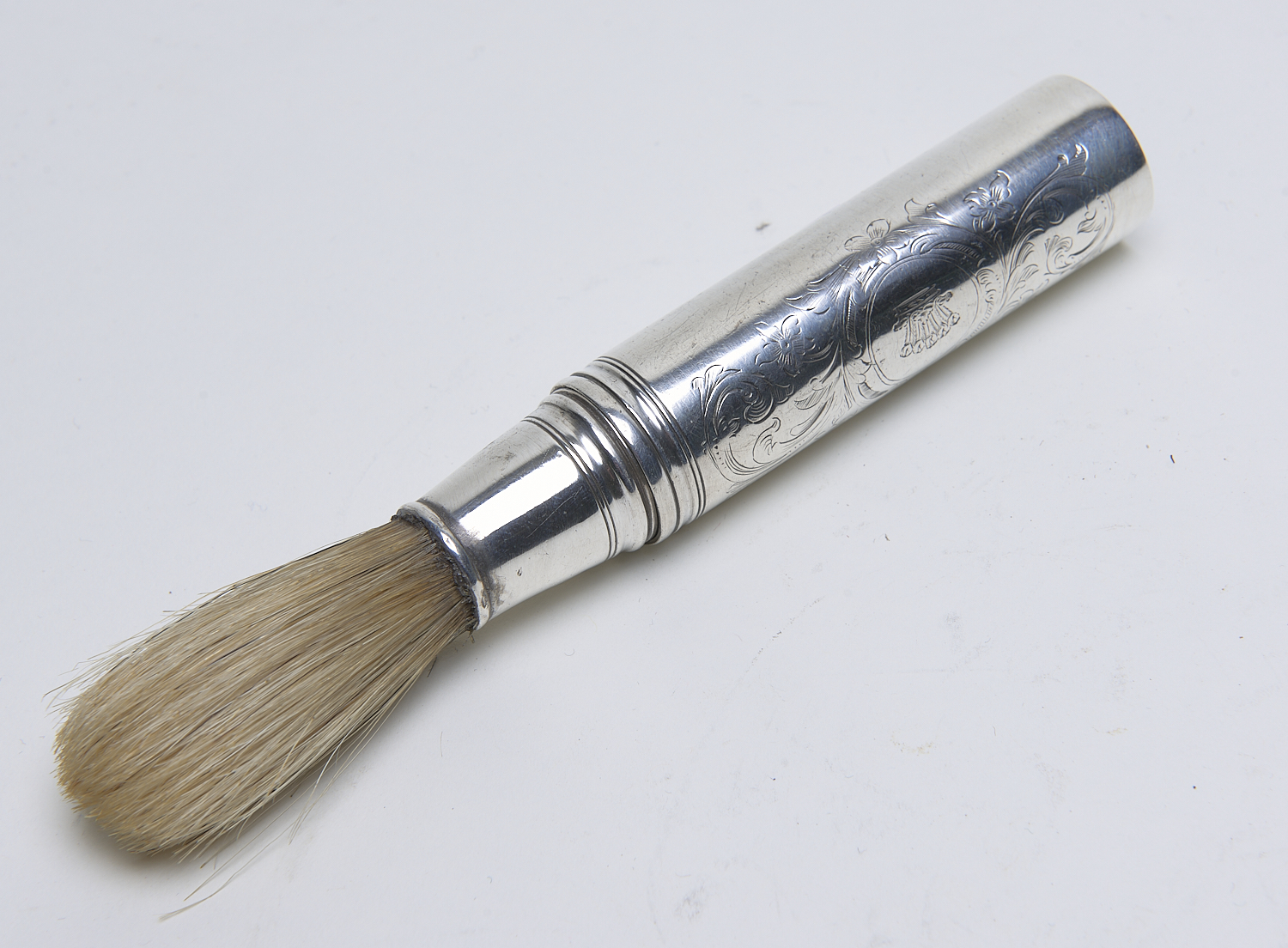 A VICTORIAN STERLING SILVER TRAVELLING SHAVING BRUSH (SCREWS INTO HANDLE END) L.15CM, LEONARD JOEL LOCAL DELIVERY SIZE: SMALL