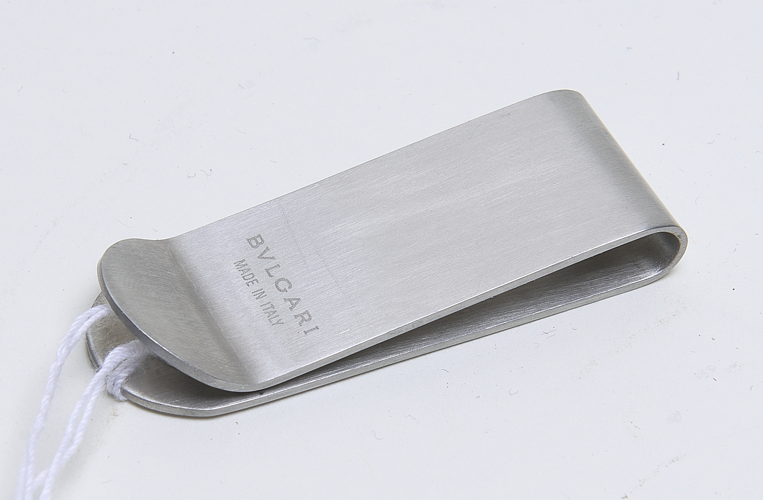 A STAINLESS STEEL BVLGARI MONEY CLIP L.5CM, LEONARD JOEL LOCAL DELIVERY SIZE: SMALL
