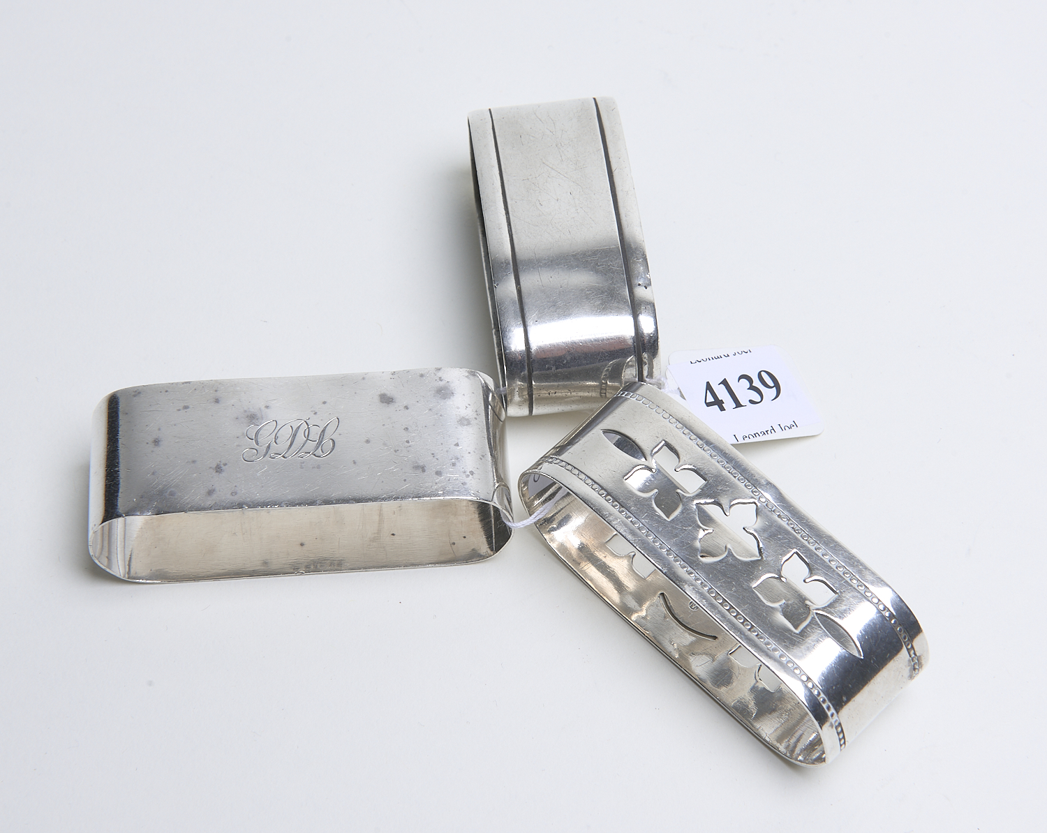 A GROUP OF THREE AUSTRALIAN STERLING SILVER NAPKIN RINGS - 84 GRAMS, LEONARD JOEL LOCAL DELIVERY SIZE: SMALL